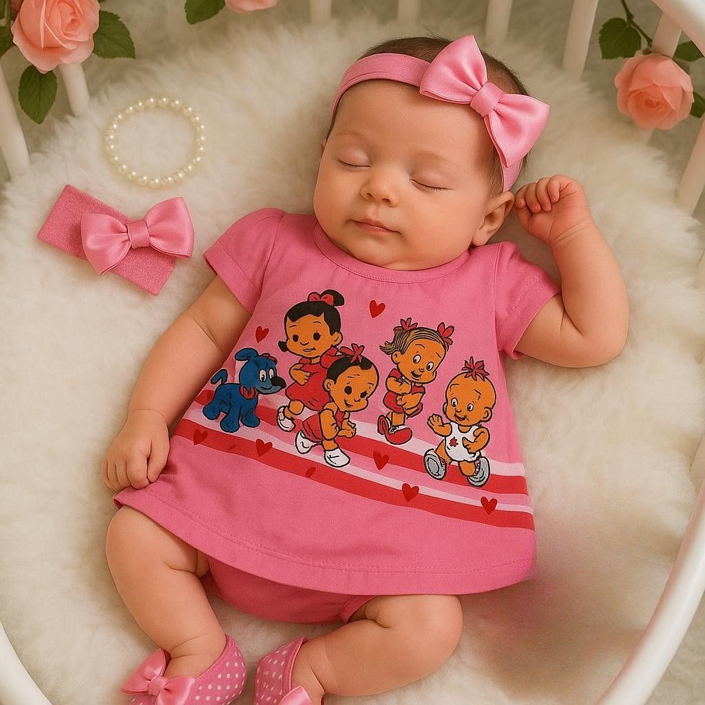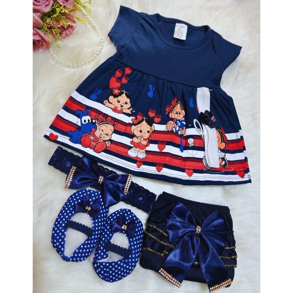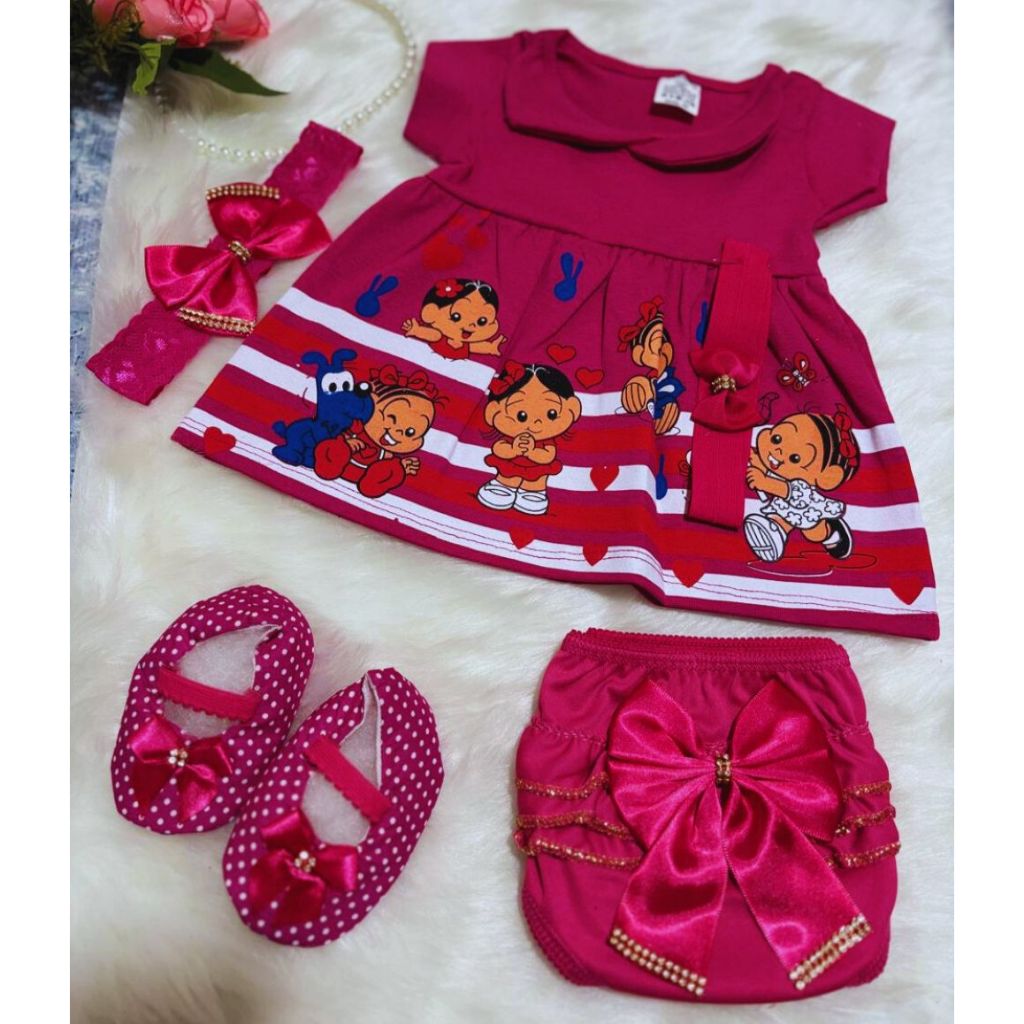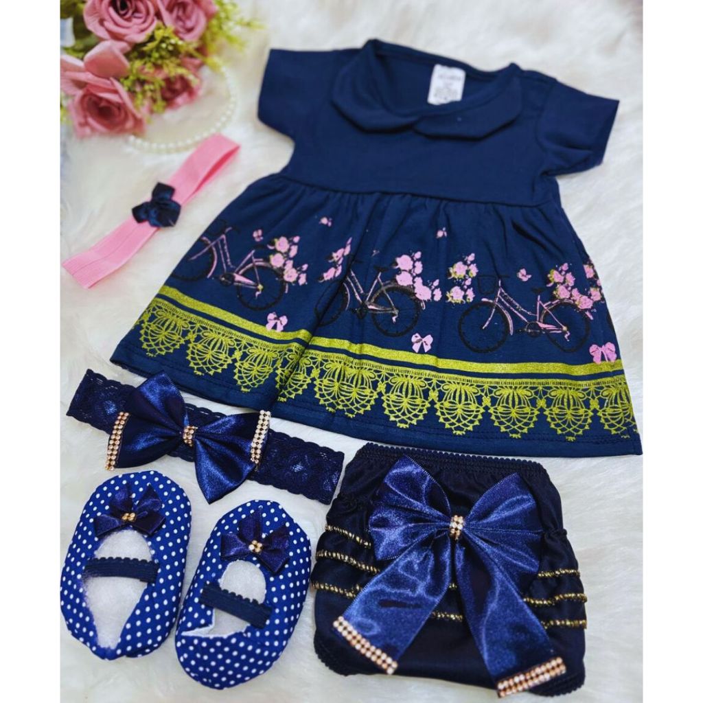 Kit Vestido temático recém nascido 5 Peças para Bebê com sapatinho e calcinha bunda rica