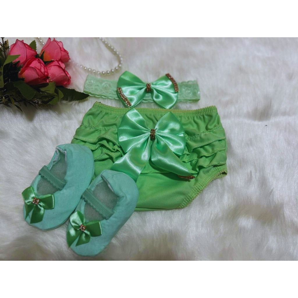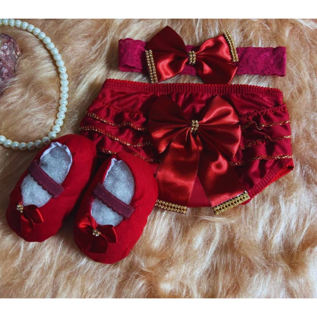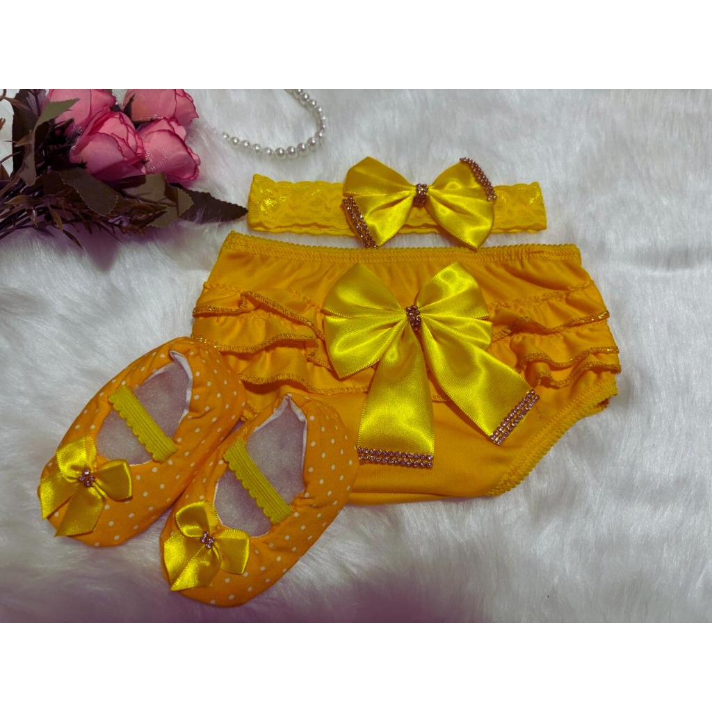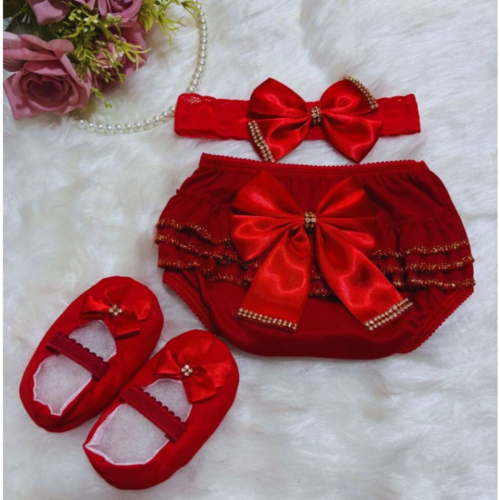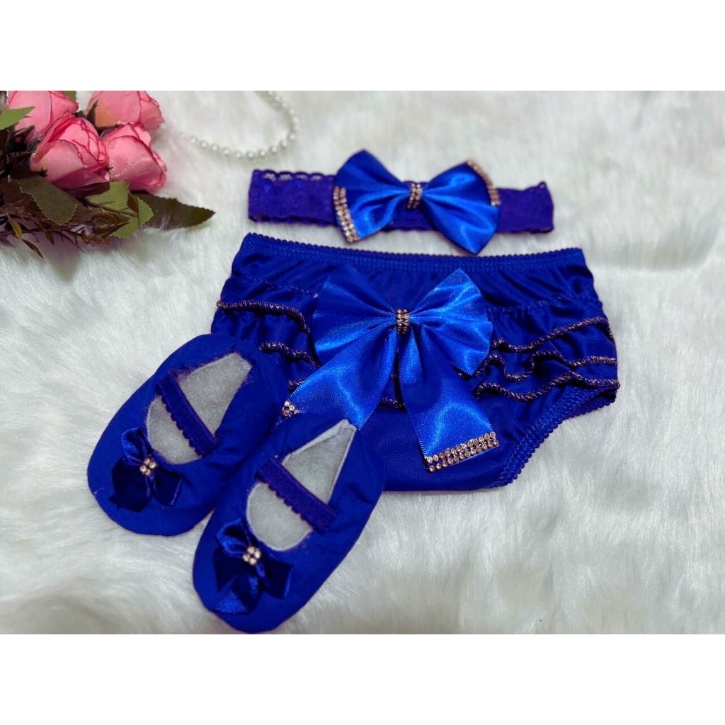 Kit Bebê 0 a 6 Meses – Calcinha Bunda Rica + Sapatinho + Tiara | Luxo e Conforto