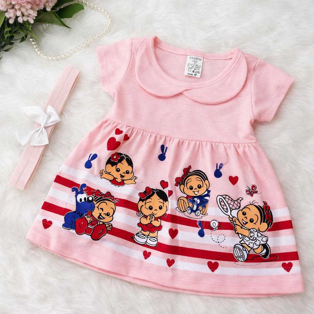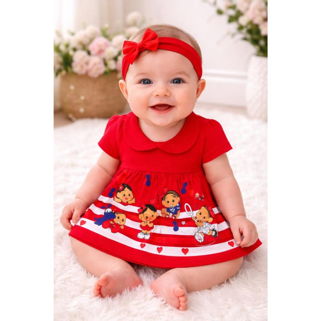 Vestido de Bebê Menina temático personagens mesversario roupa de bebe com faixinha de cabelo