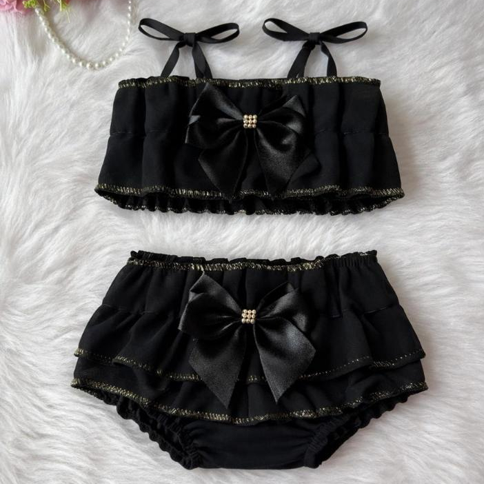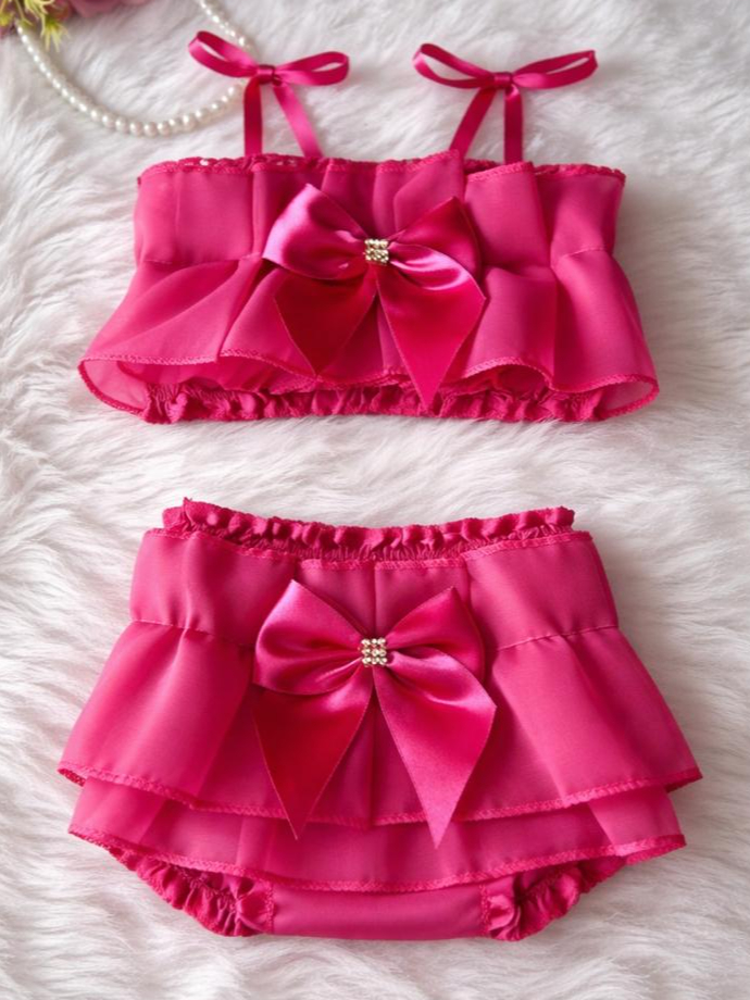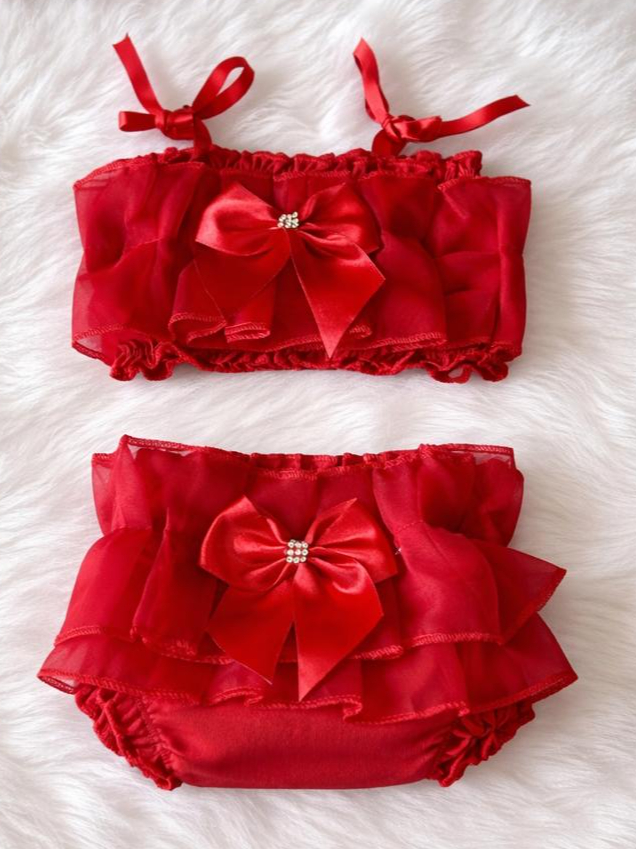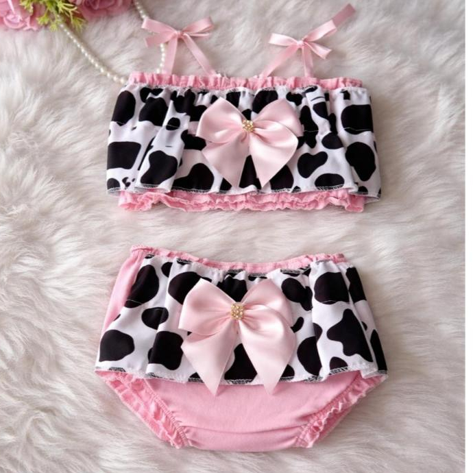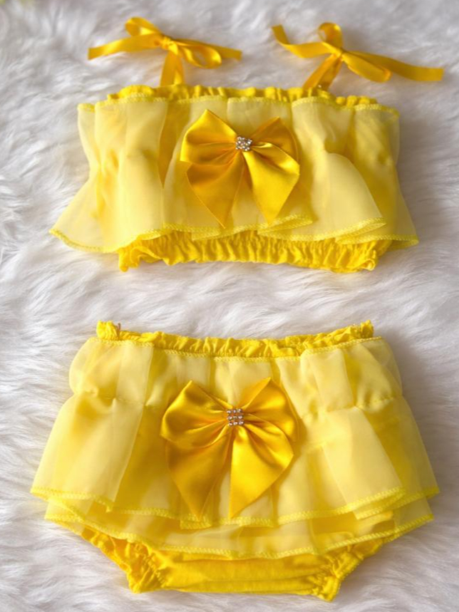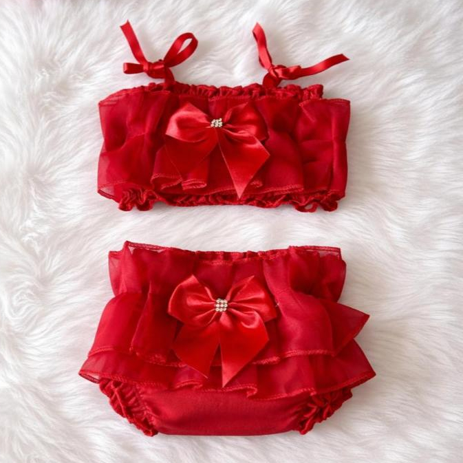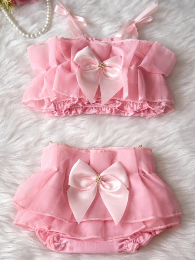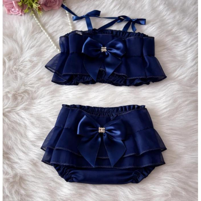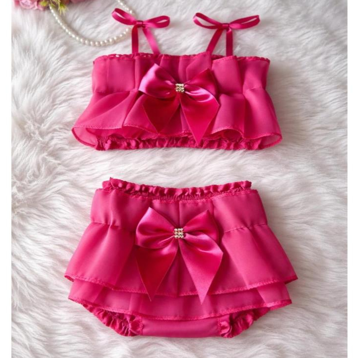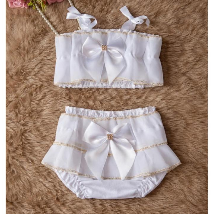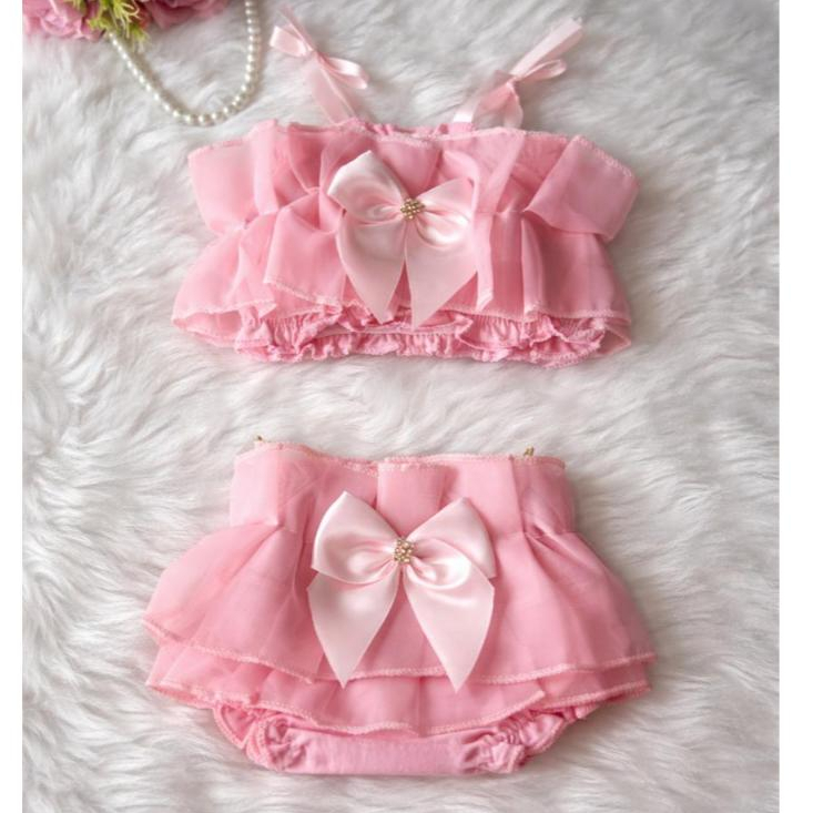 Conjunto Bebê Menina Cropped + Calcinha Bunda Rica Look Mêsversário Fofo Infantil Croped Bunda Rica