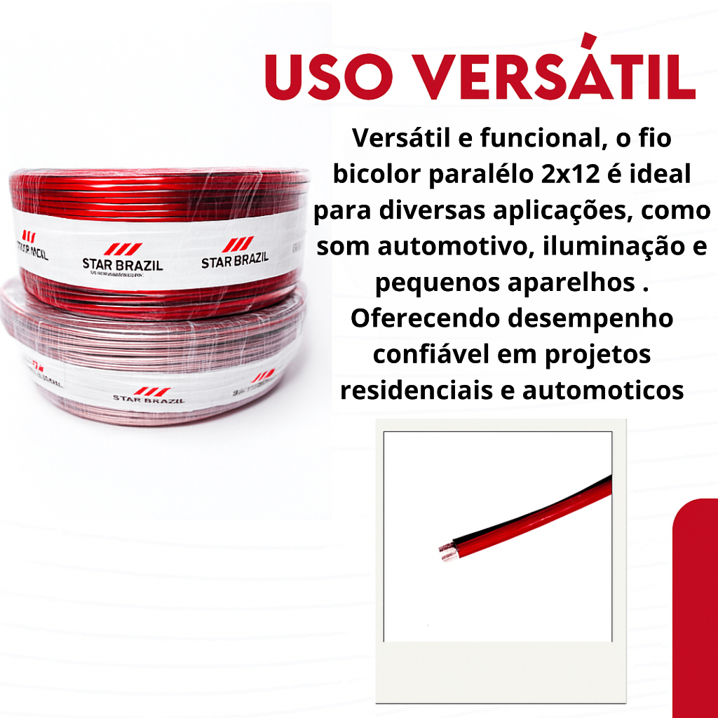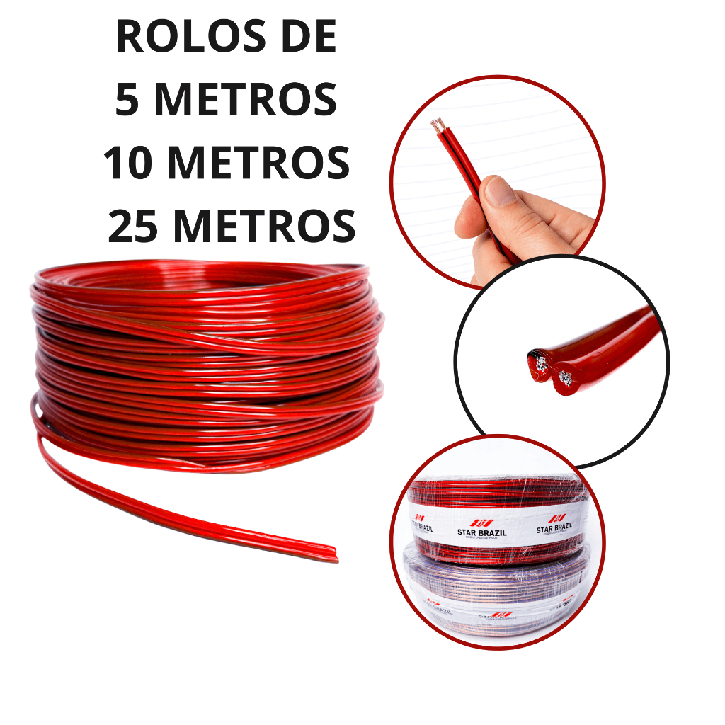 Cabo de Som Paralelo 2 vias 2x12 2,5mm Bicolor 5/10/25 metros