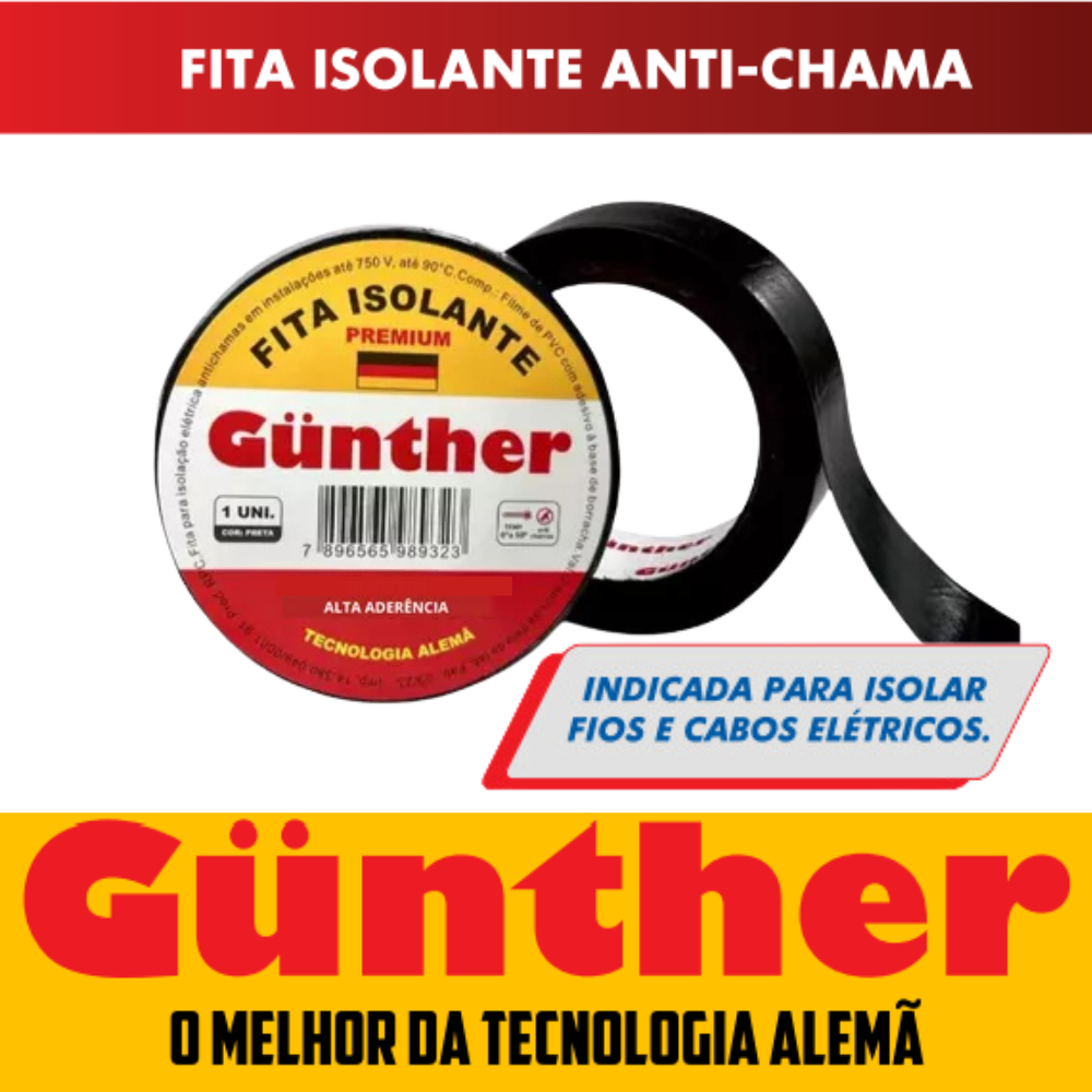 Kit 10 ou 5 Fitas isolante 10 Metros Alta Qualidade Anti-Chama Gunther
