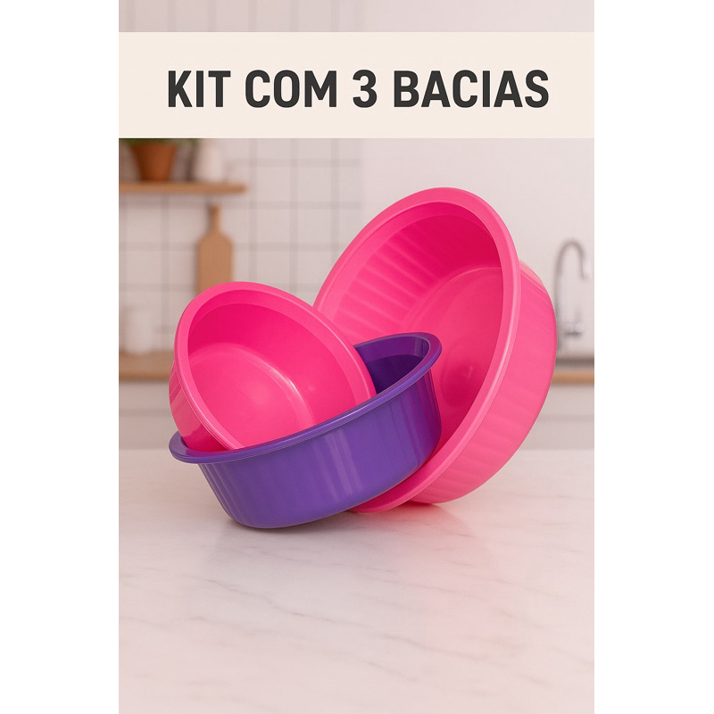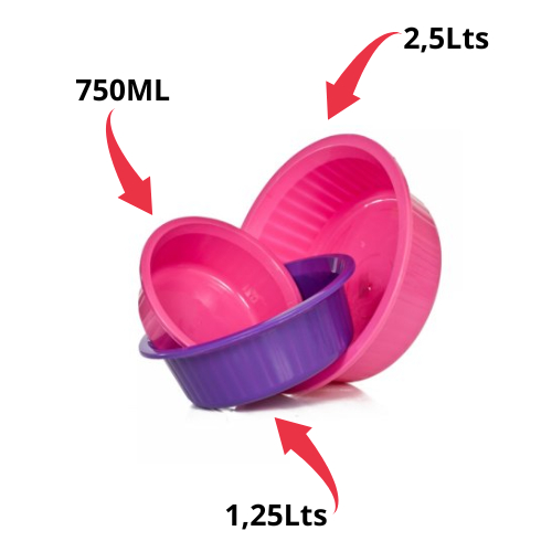 Kit Bacia Canelada Plus Cores Sortidas P M G 750ml 1,25lts 2,5lts Cozinha Organização 697
