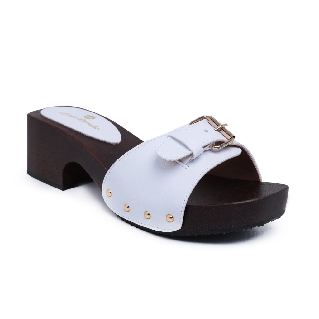 Sandália Linda Ramalho Tamanco escuro Couro Claro Legitímo