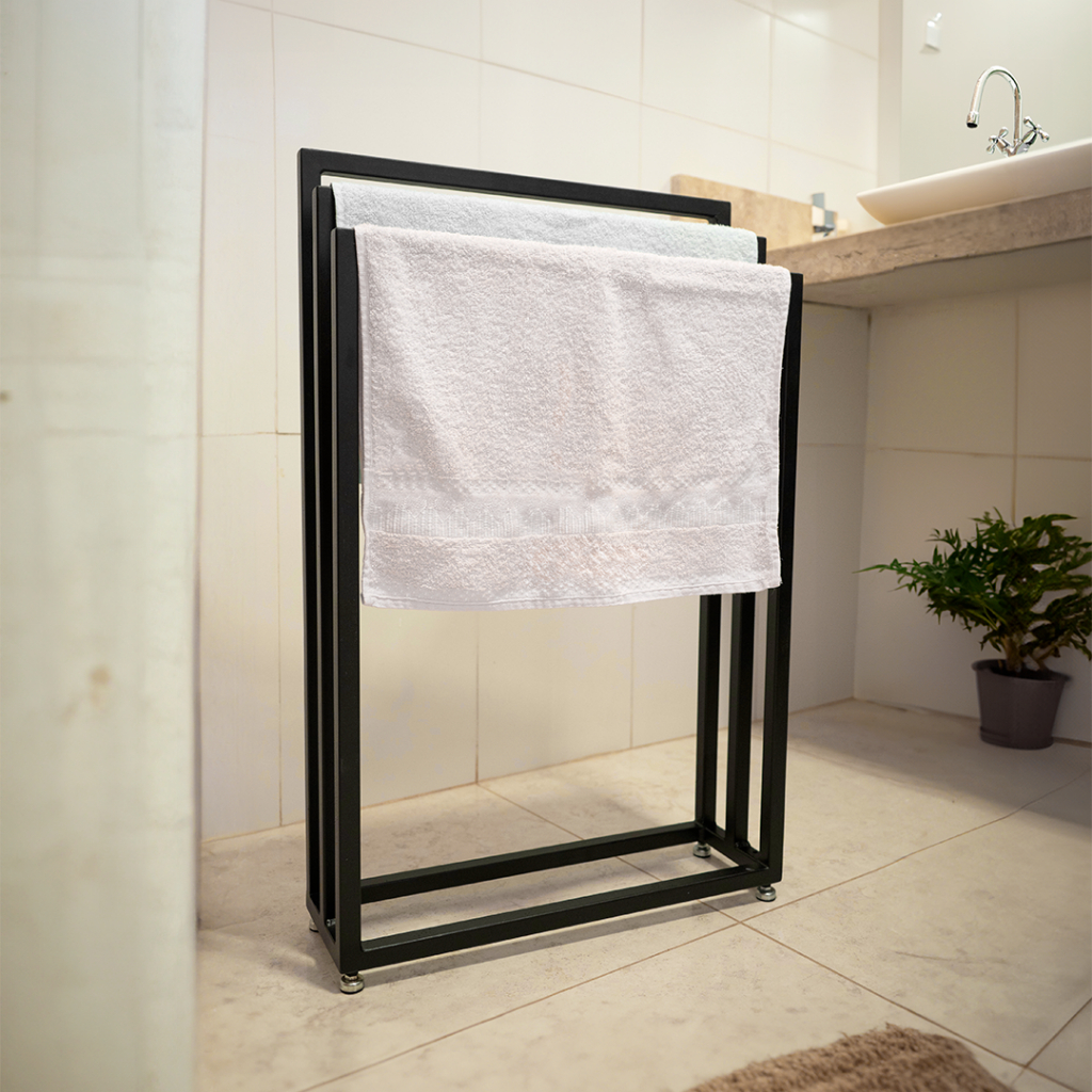 Toalheiro de Chão Estilo Industrial em Metalon e Pintura Eletrostática Preto Alto Padrão Excelente Qualidade Kasadi