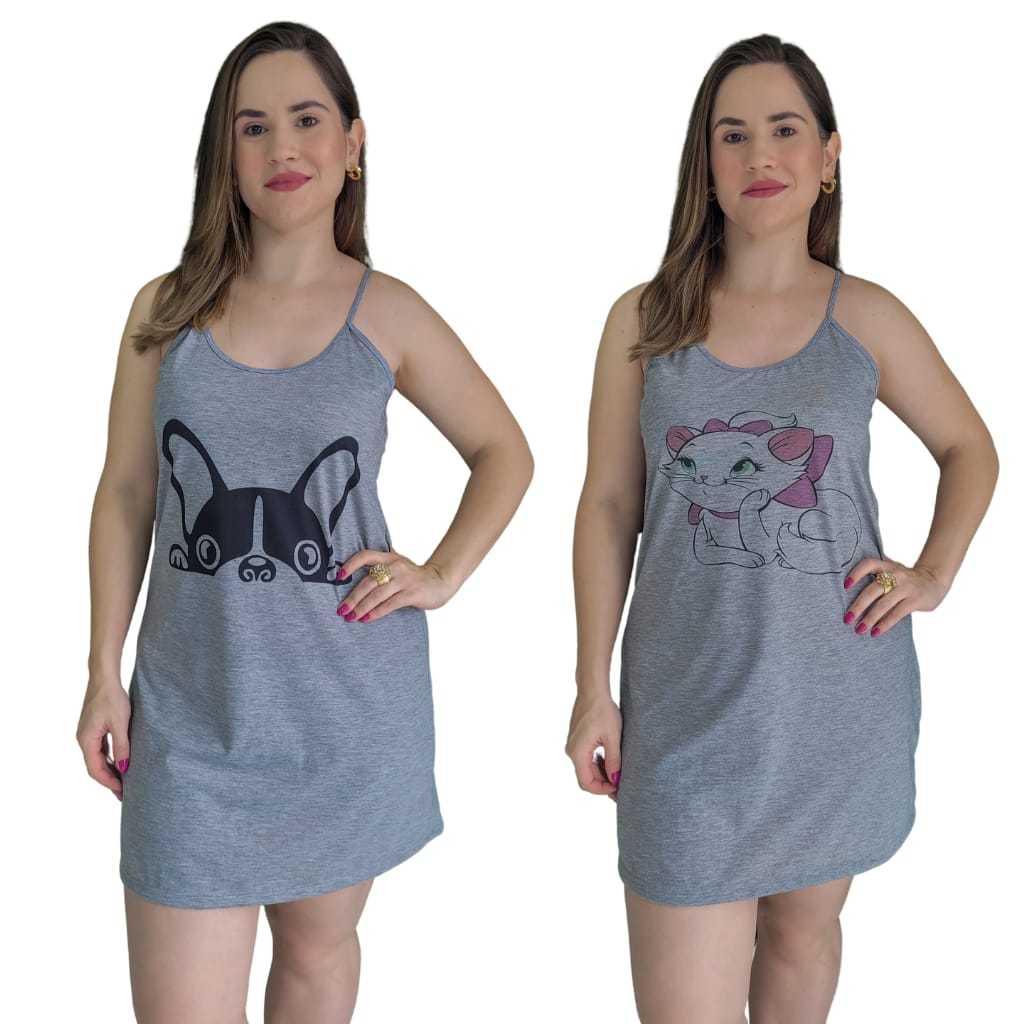 Kit 2 Pijamas Camisola Adulto Feminina Alça De Verão