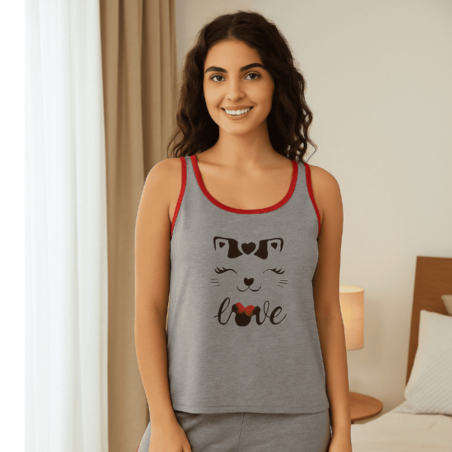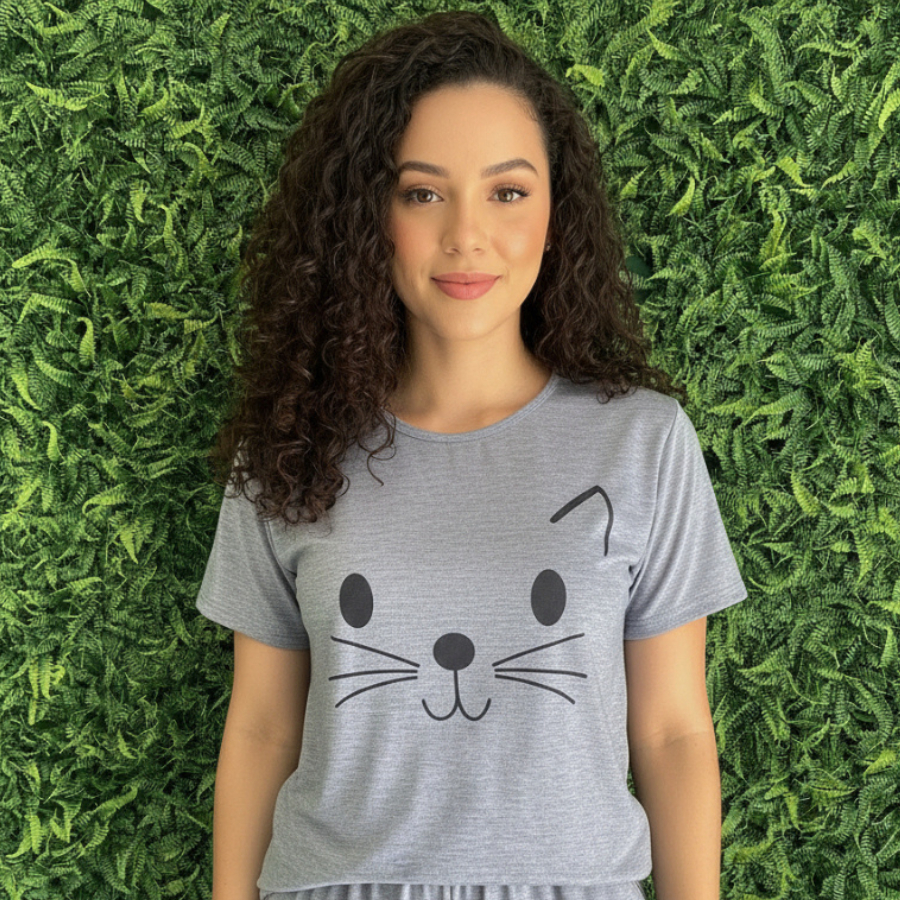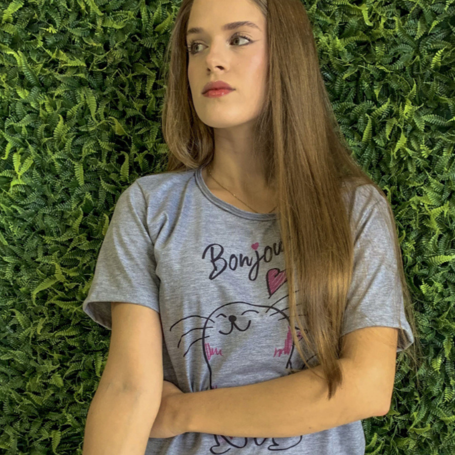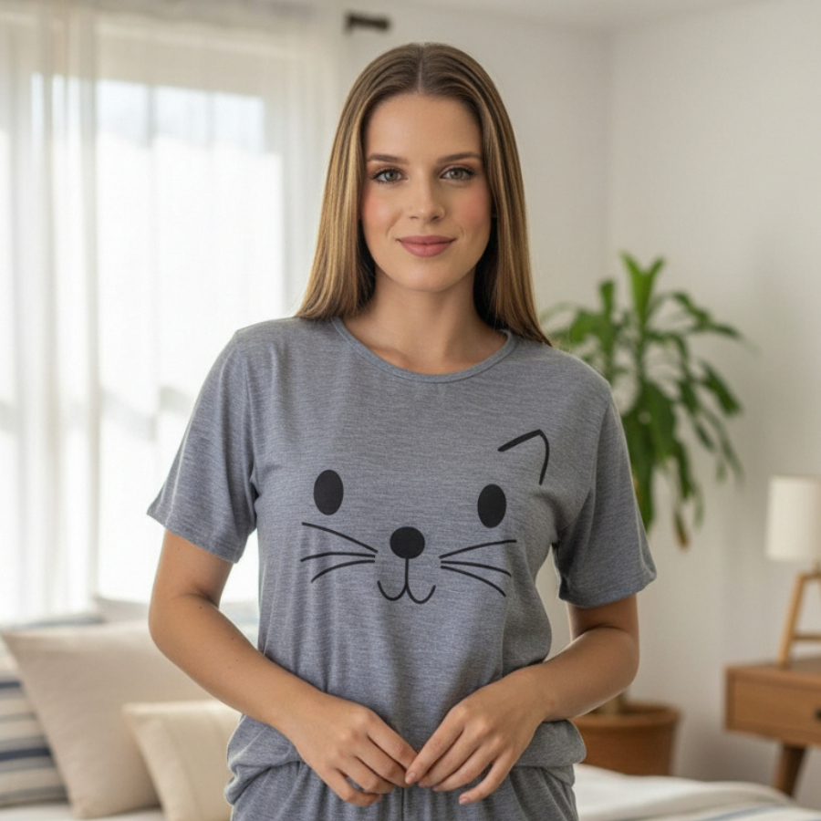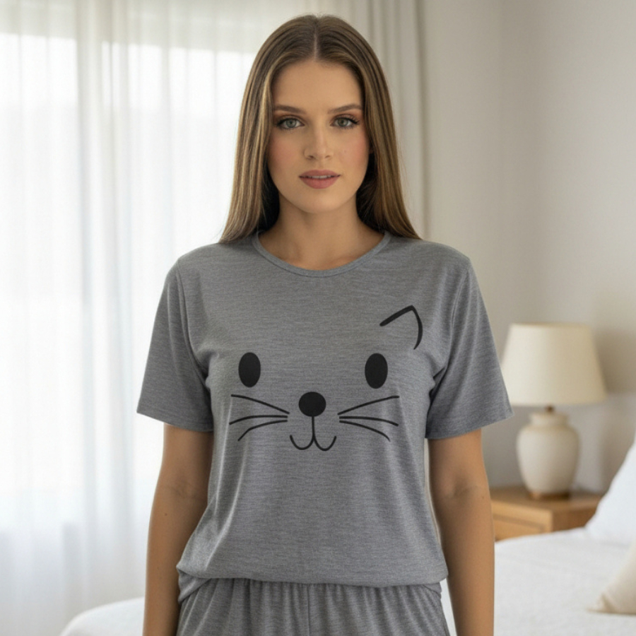 Pijama Feminino Malha Fria de Manguinha Short Doll Linha Premium Estampado (Fresco e Confortável)