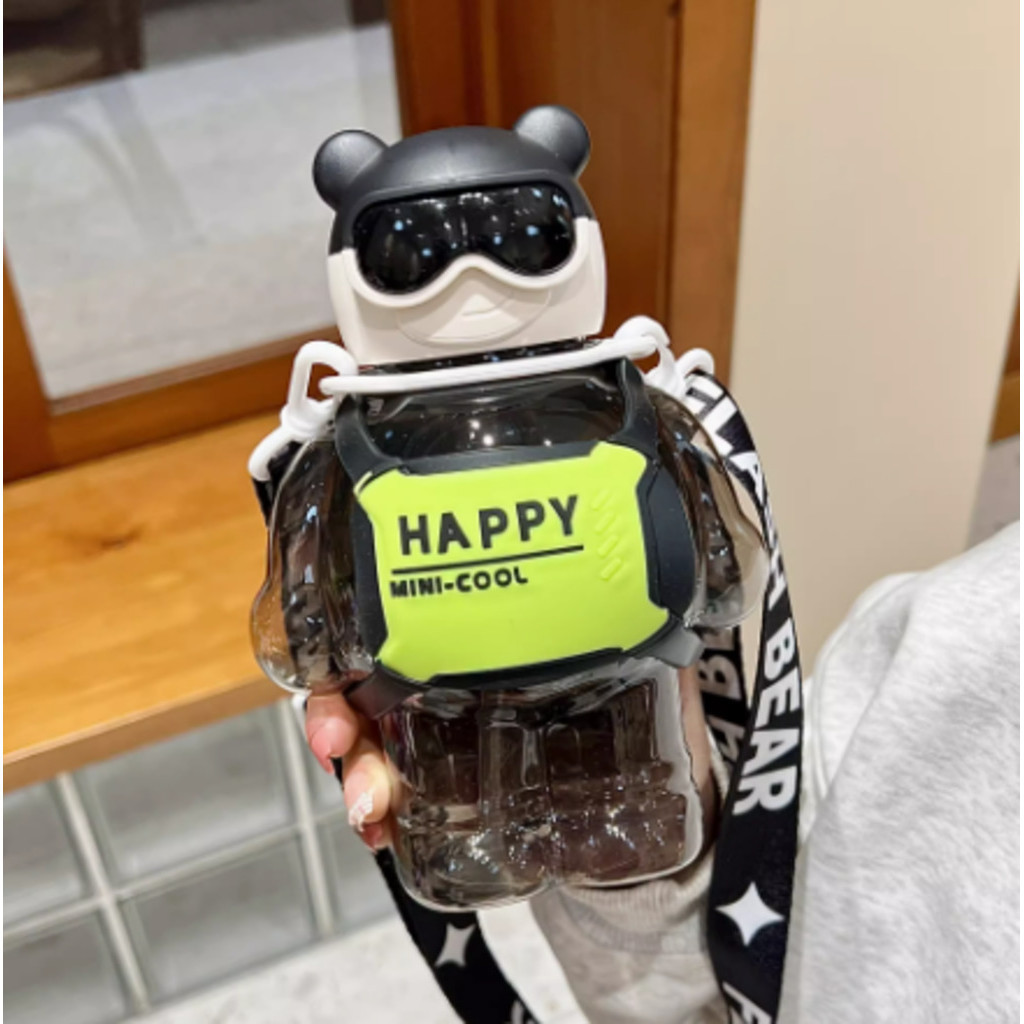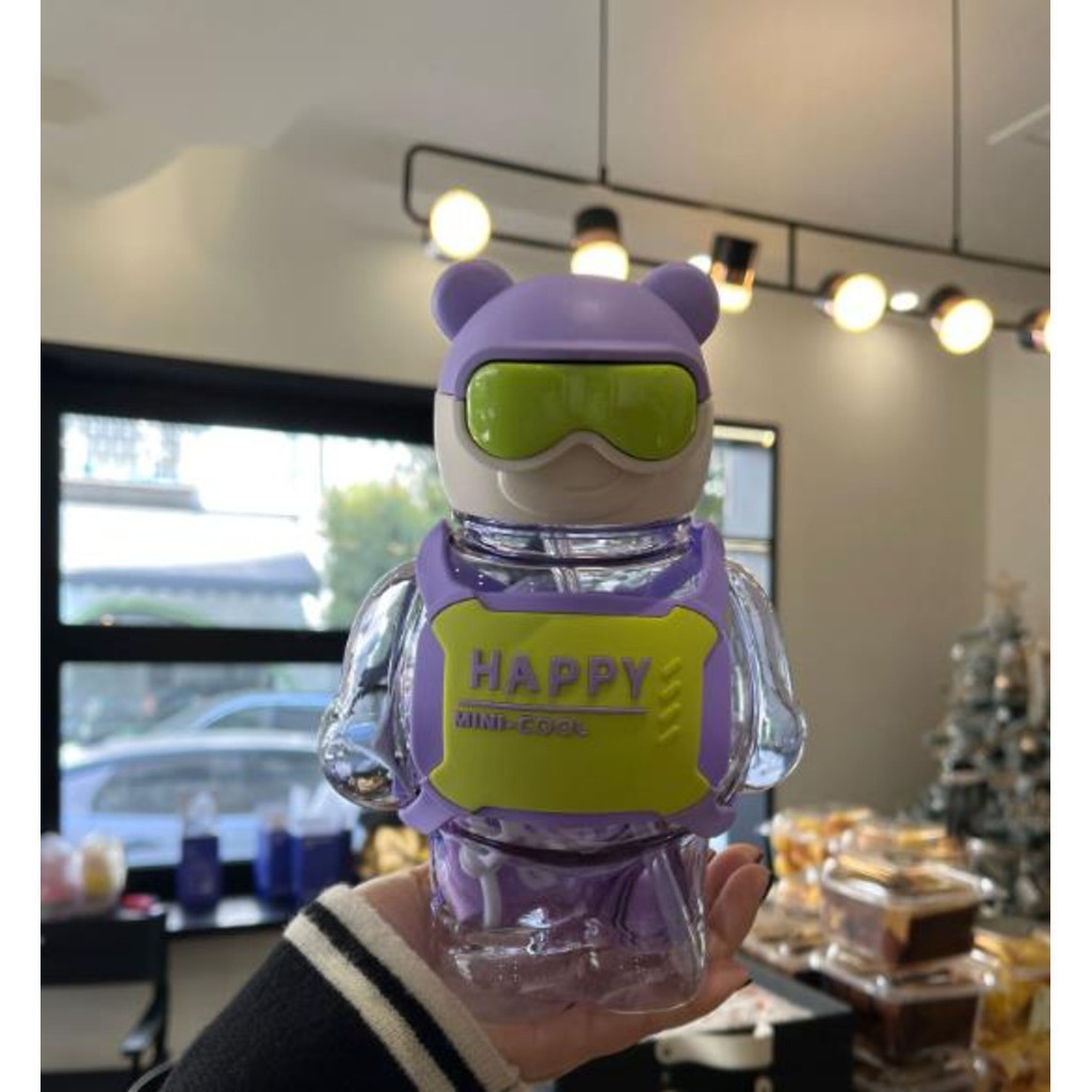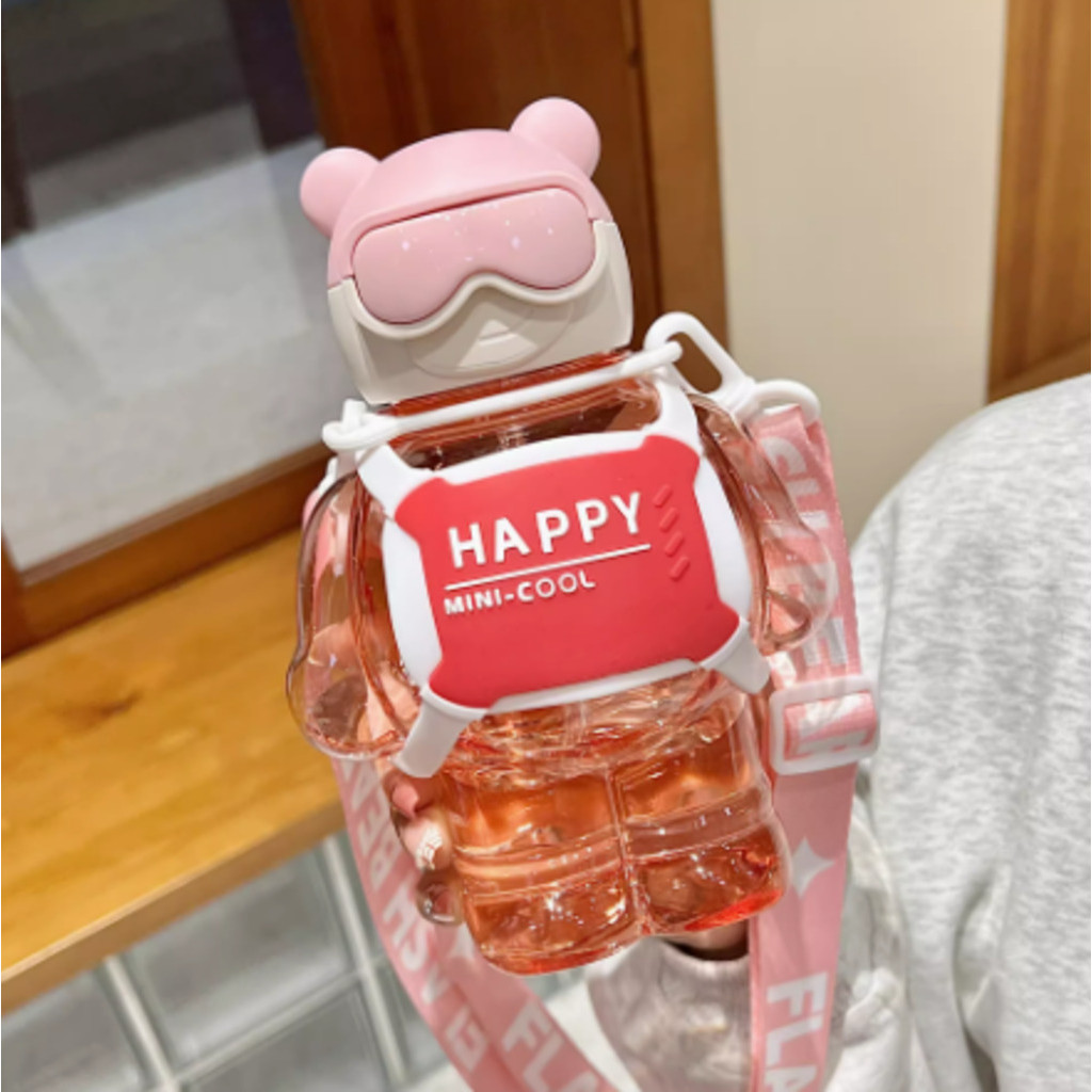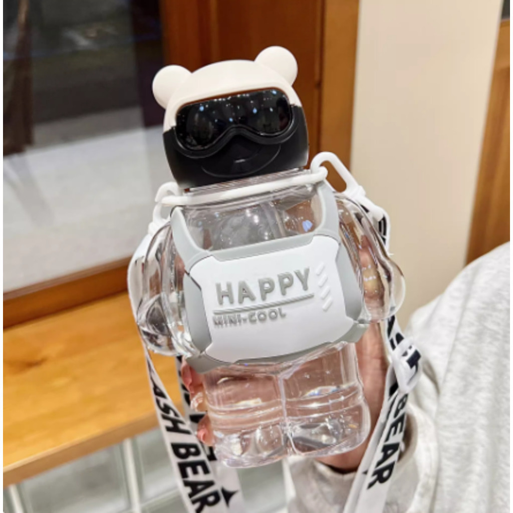 Garrafa De Ursinho Água Infantil Criança Portátil Com Canudo Desenho Multicolorido