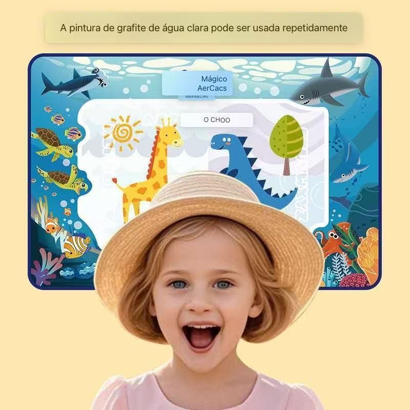 Tapete de Água Mágico Brinquedo Educativo para Criatividade Reutilizável com 3 Canetas Presente