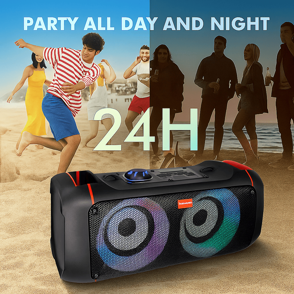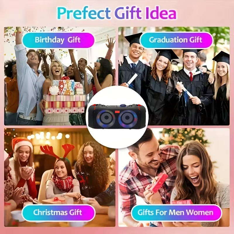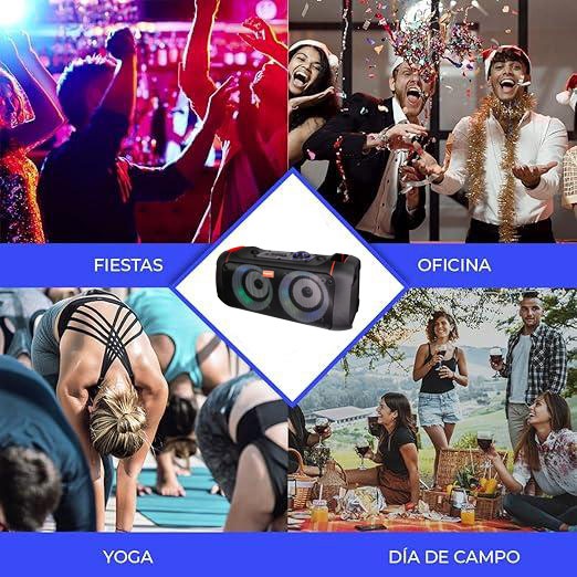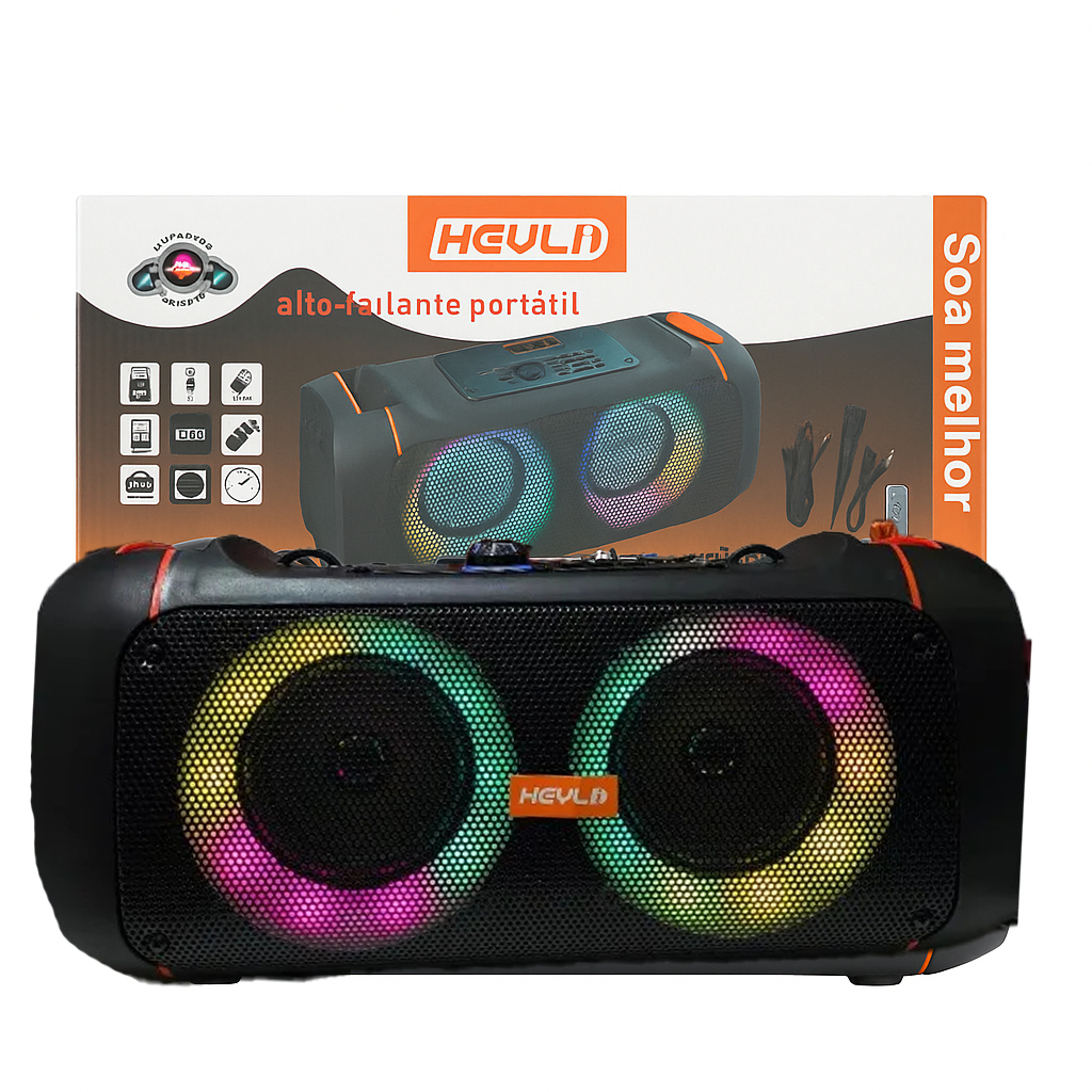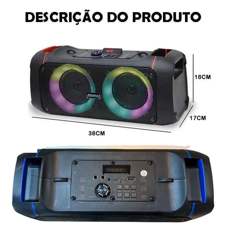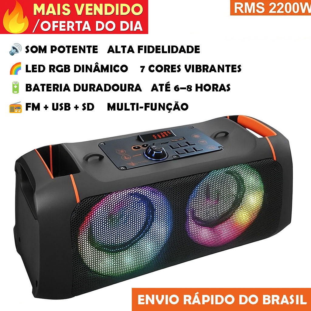 Caixa de Som Bluetooth Portátil Potente LED PMPO 2200W com Microfone/Controle Remoto Bateria