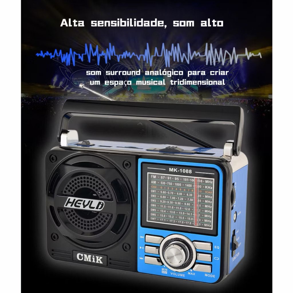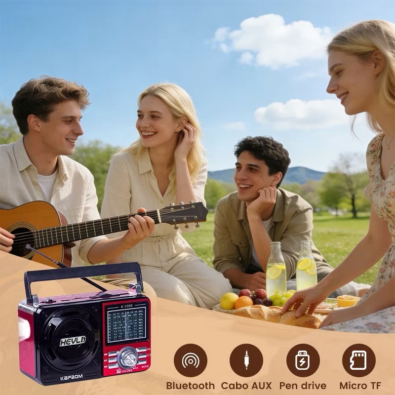 Rádio Retro Vintage Acabamento Luxuoso Conexão Bluetooth p2 Som Limpo Rádio Am Fm Analógico Antena
