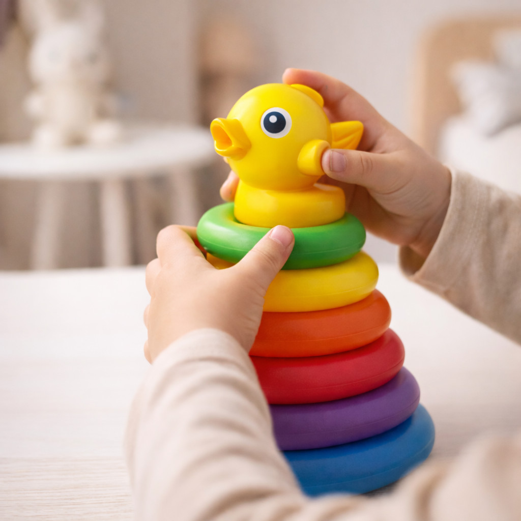 Torre de Encaixe Infantil Educativo com 5/7 Argolas Coloridas Brinquedo Sensorial Didático Crianças