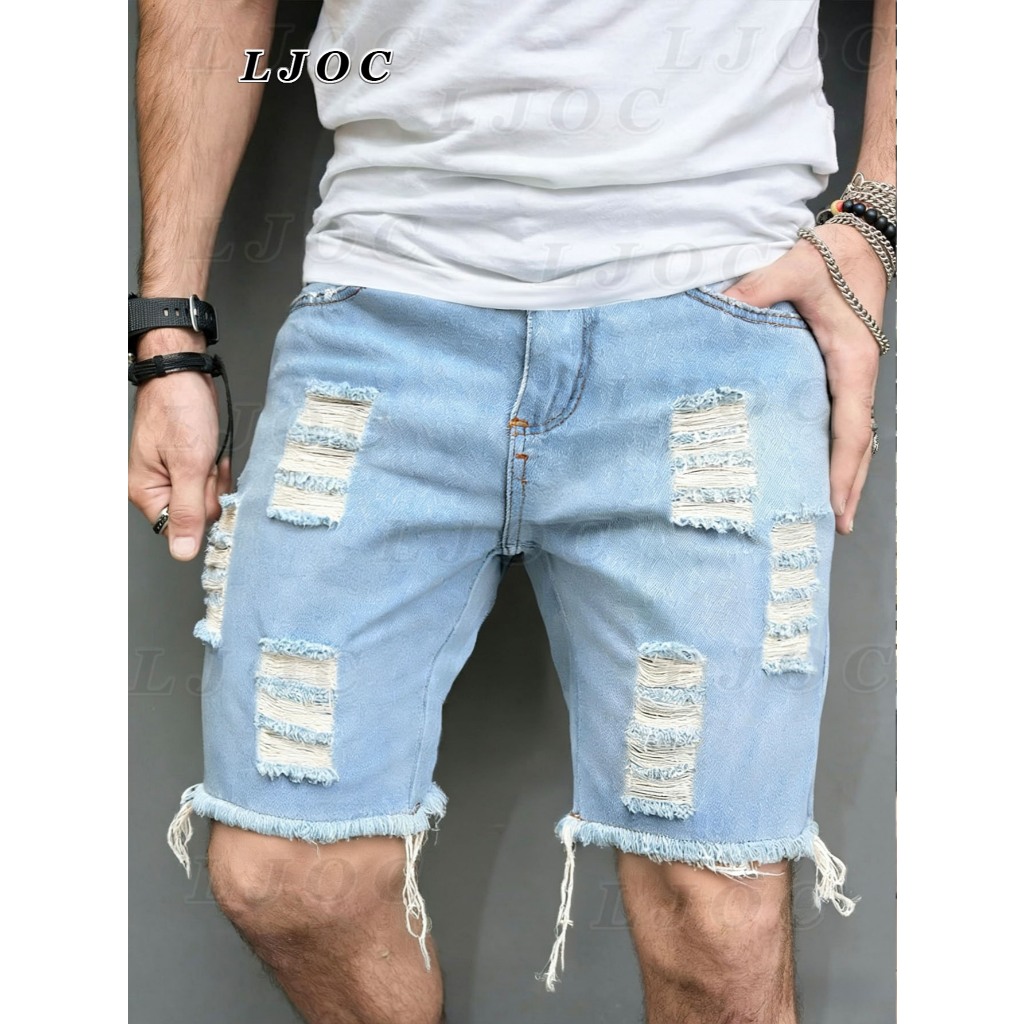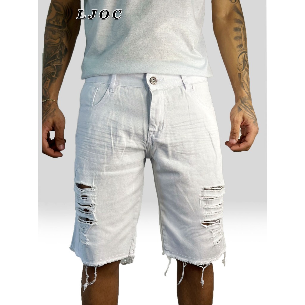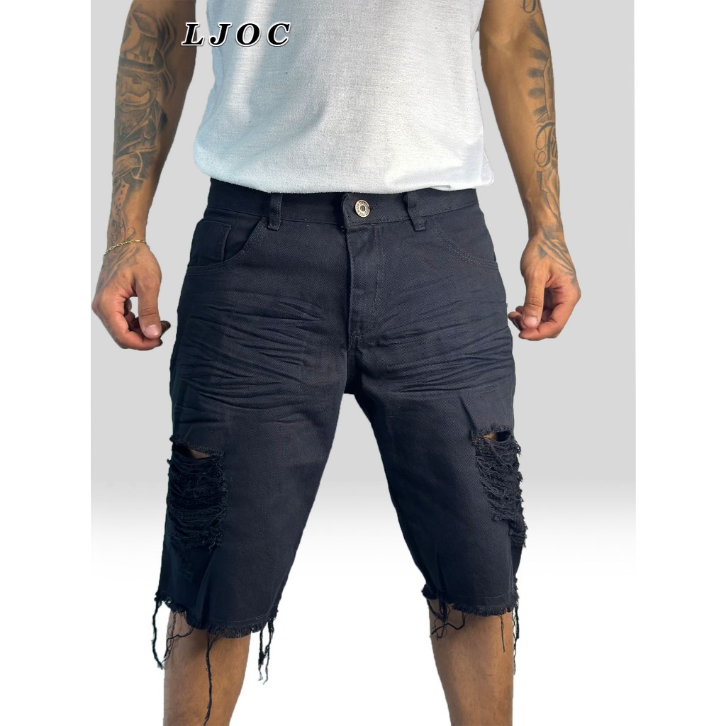 Oscar Bermuda Sarja Colorida Jeans Premium Masculino Diversas Cores/Rasgada em relevo