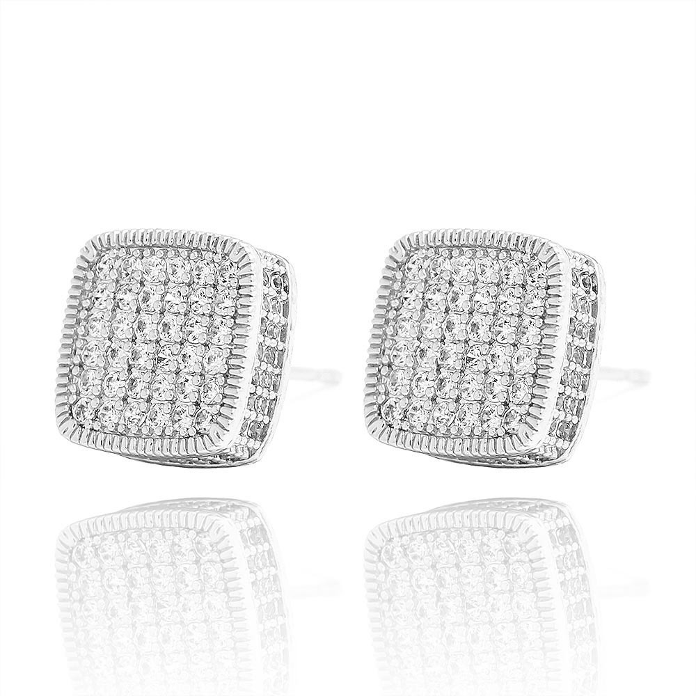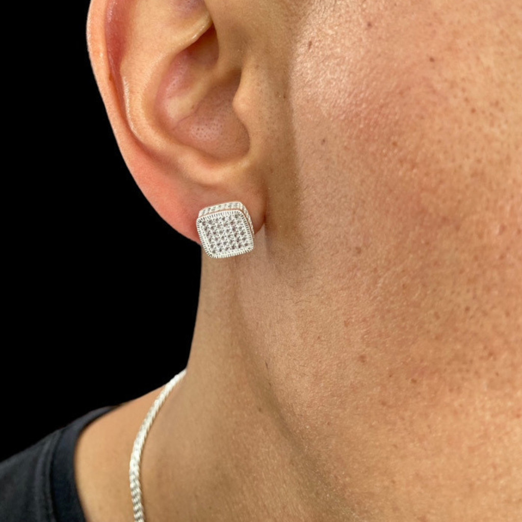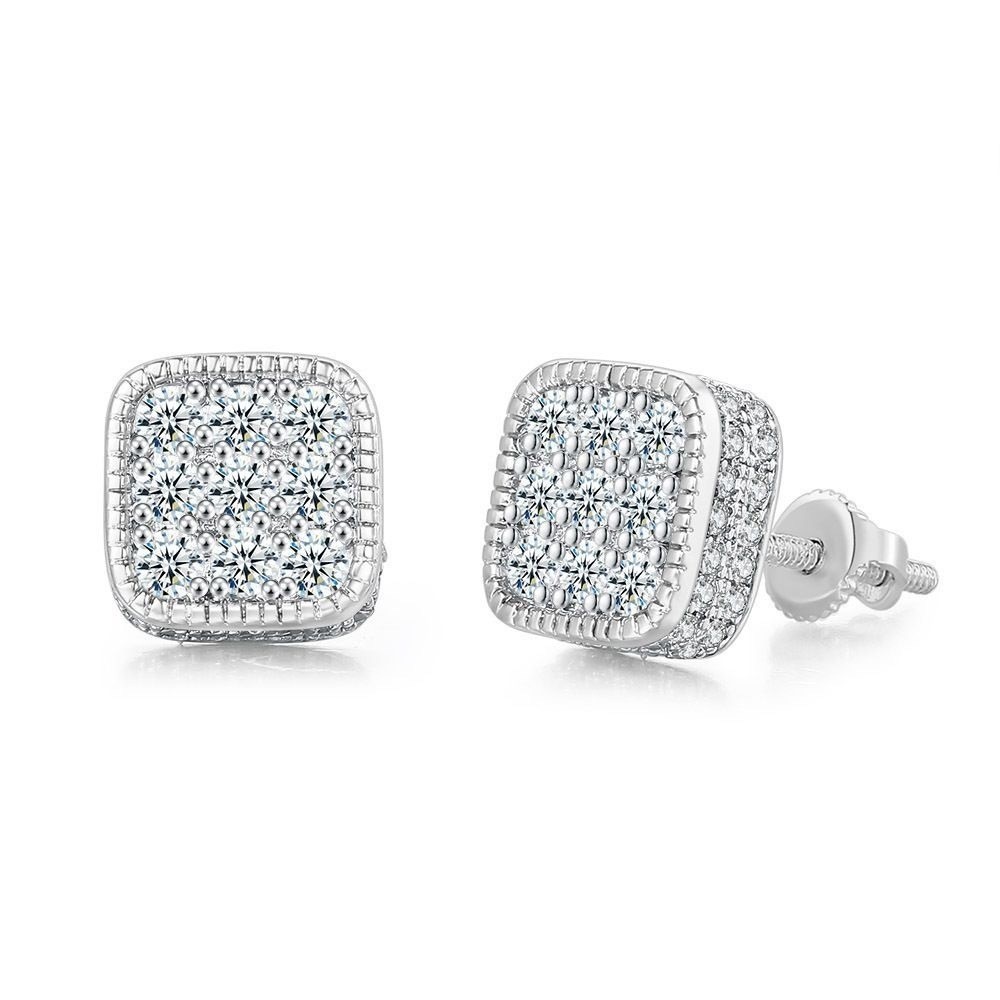 Brinco Cravejado Quadrado Ice de Luxo Banhado Prata 925