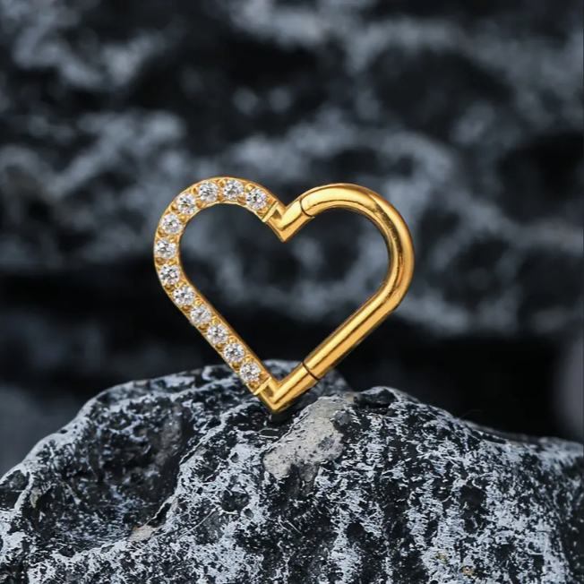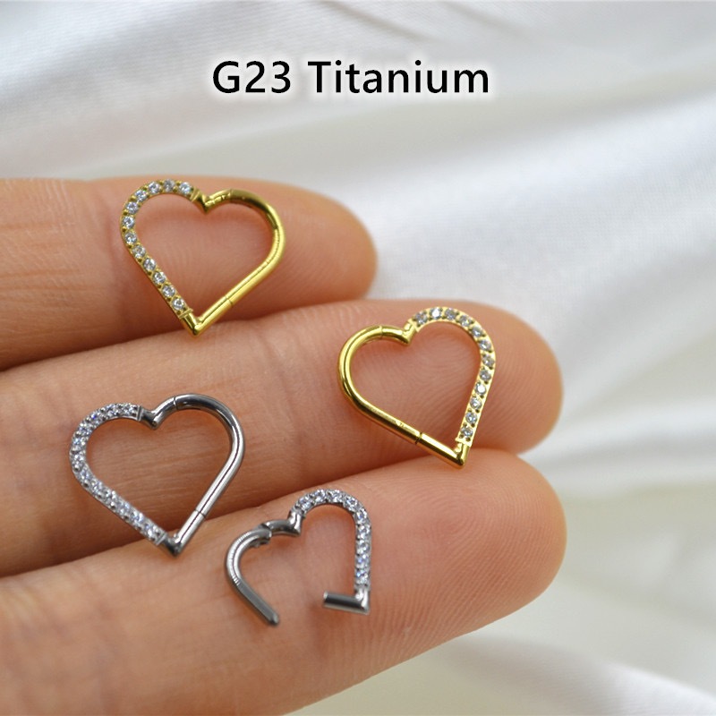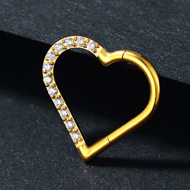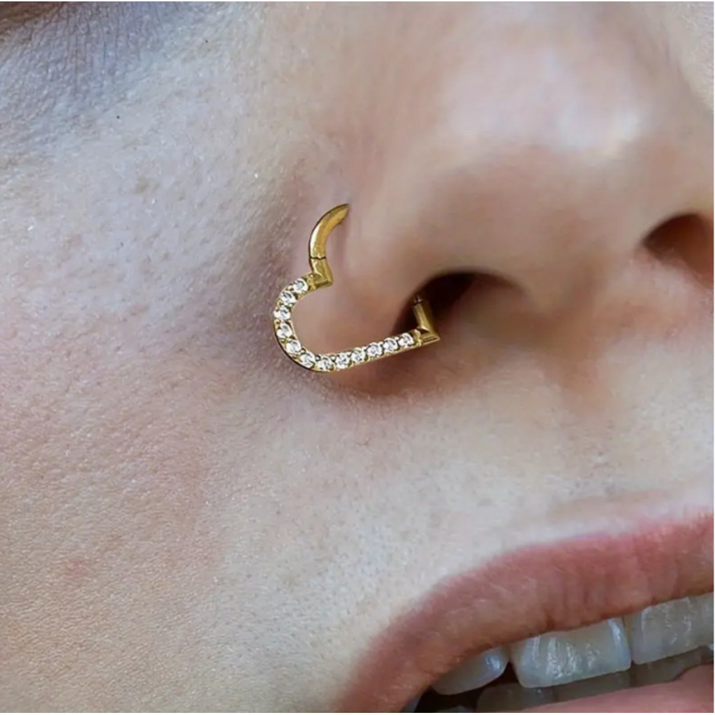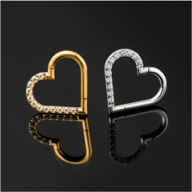 Piercing Argola Helix Conch Coração Titânio Clik Zircônia Cravejada Piercing Daith, Nariz, Orelha Coracao Ponto de Luz