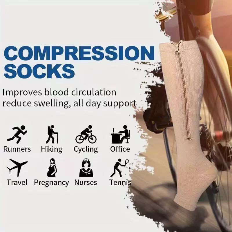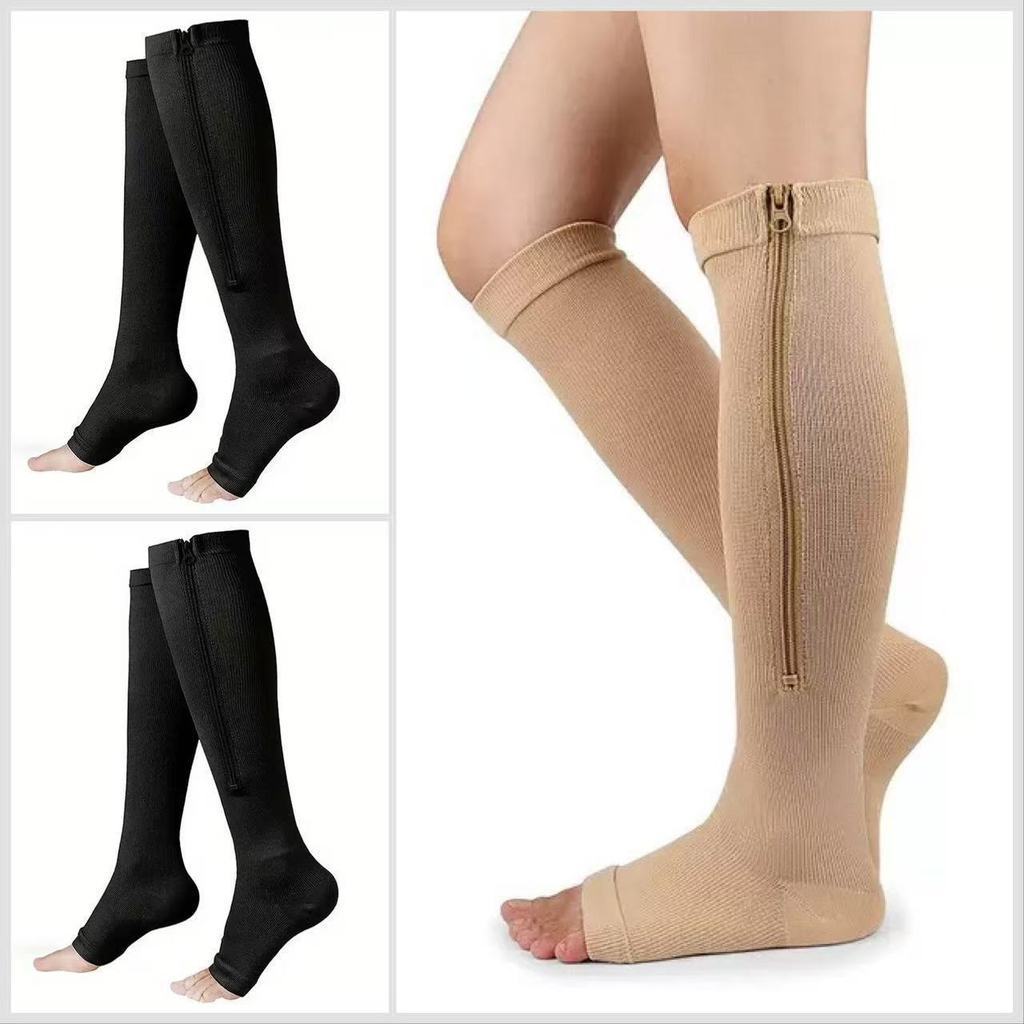 KIT Meia de Compressão Varizes Pernas Cansadas Inchaço Dores 3/4 Zíper Compressão Unissex MODA