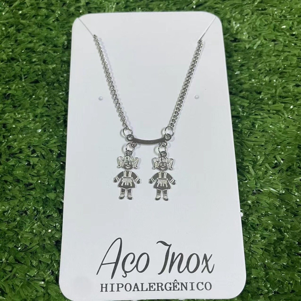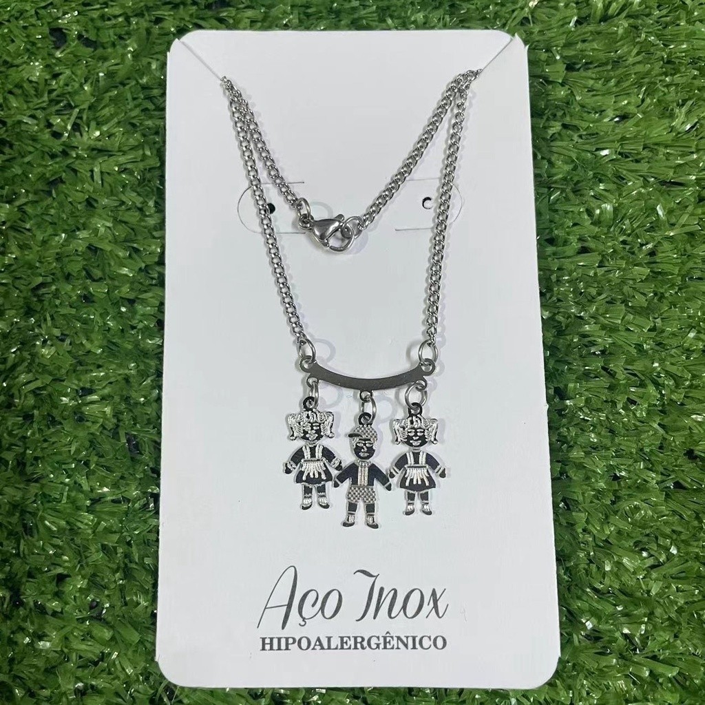 Colar pingente filho filha filhos filhas casal aço inox cirúrgico menino menina Corrente feminina(não fica preto)
