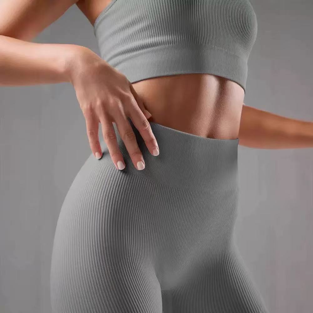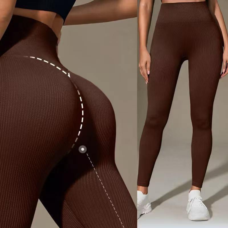 Calça Legging Canelada Premium de Cintura Alta Sem Costura Academia Feminina Elástica e Fitness
