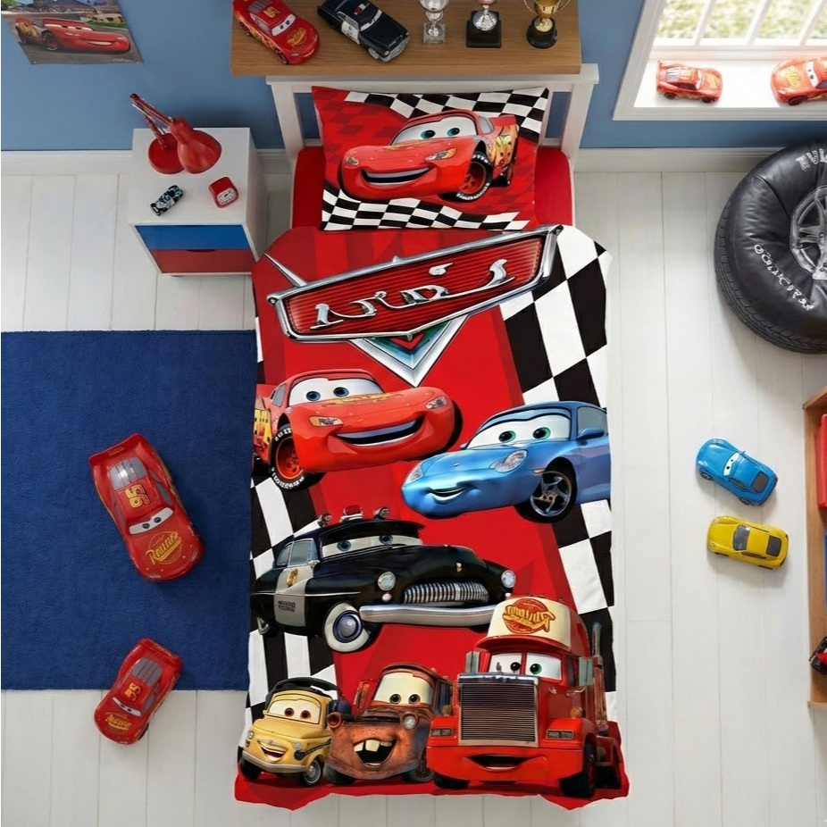 Lençol sem elástico Solteiro + Fronha CARROS LCS 122