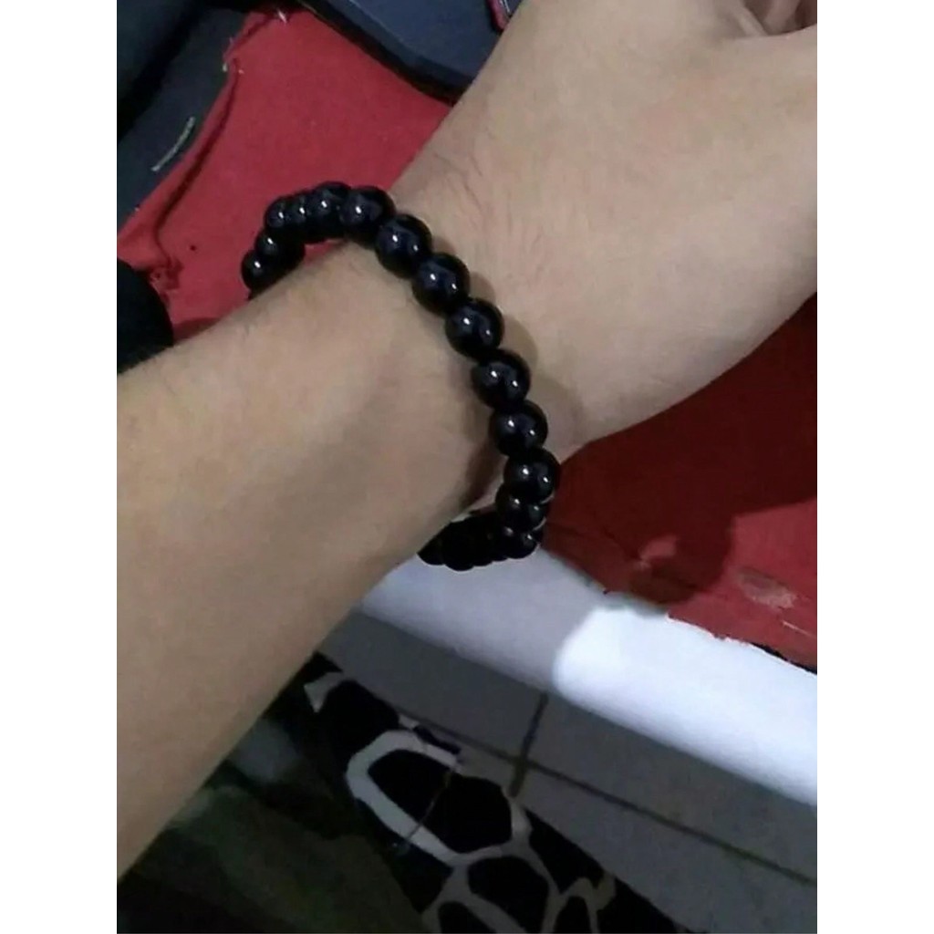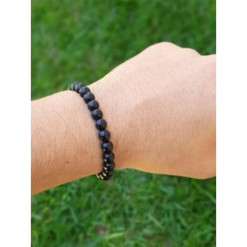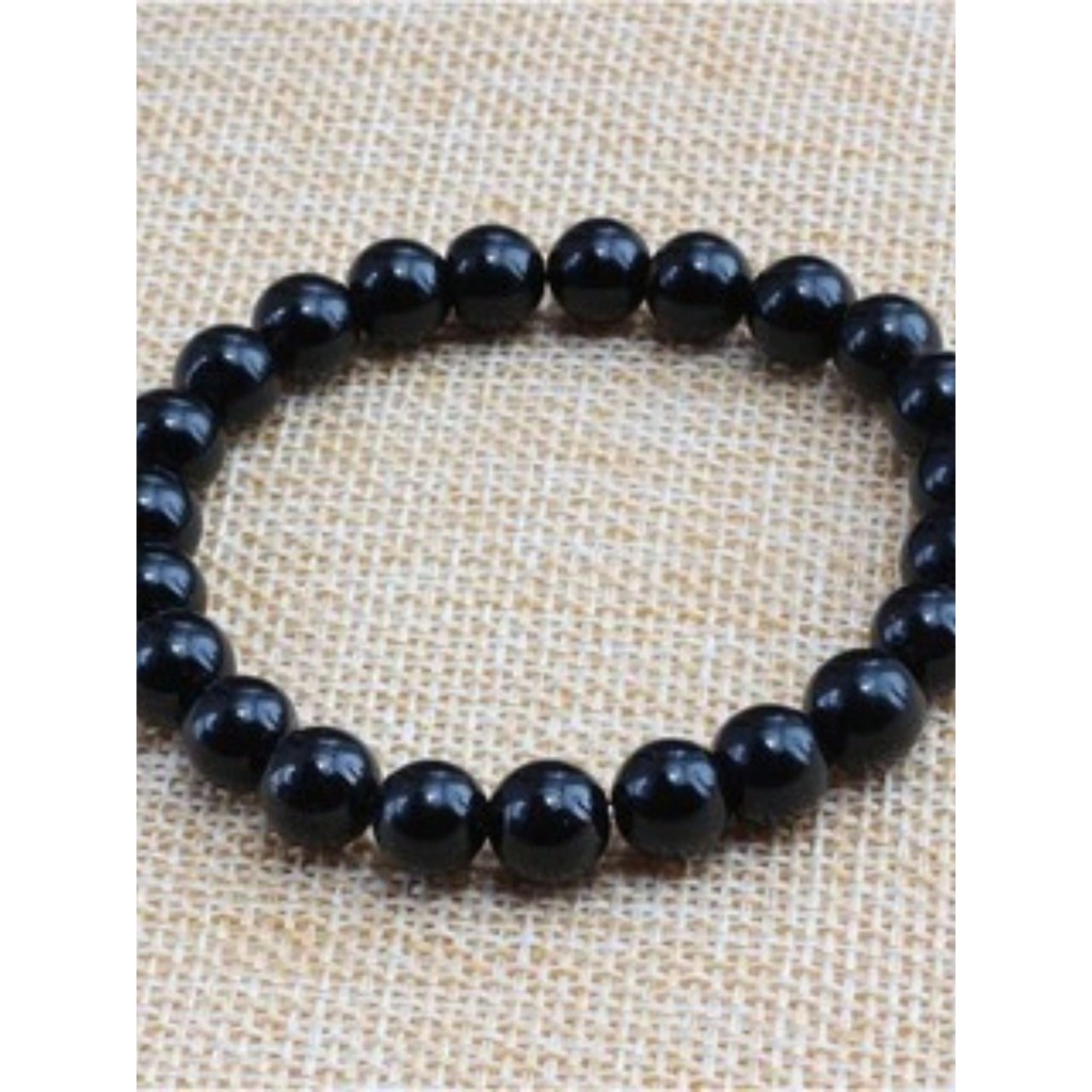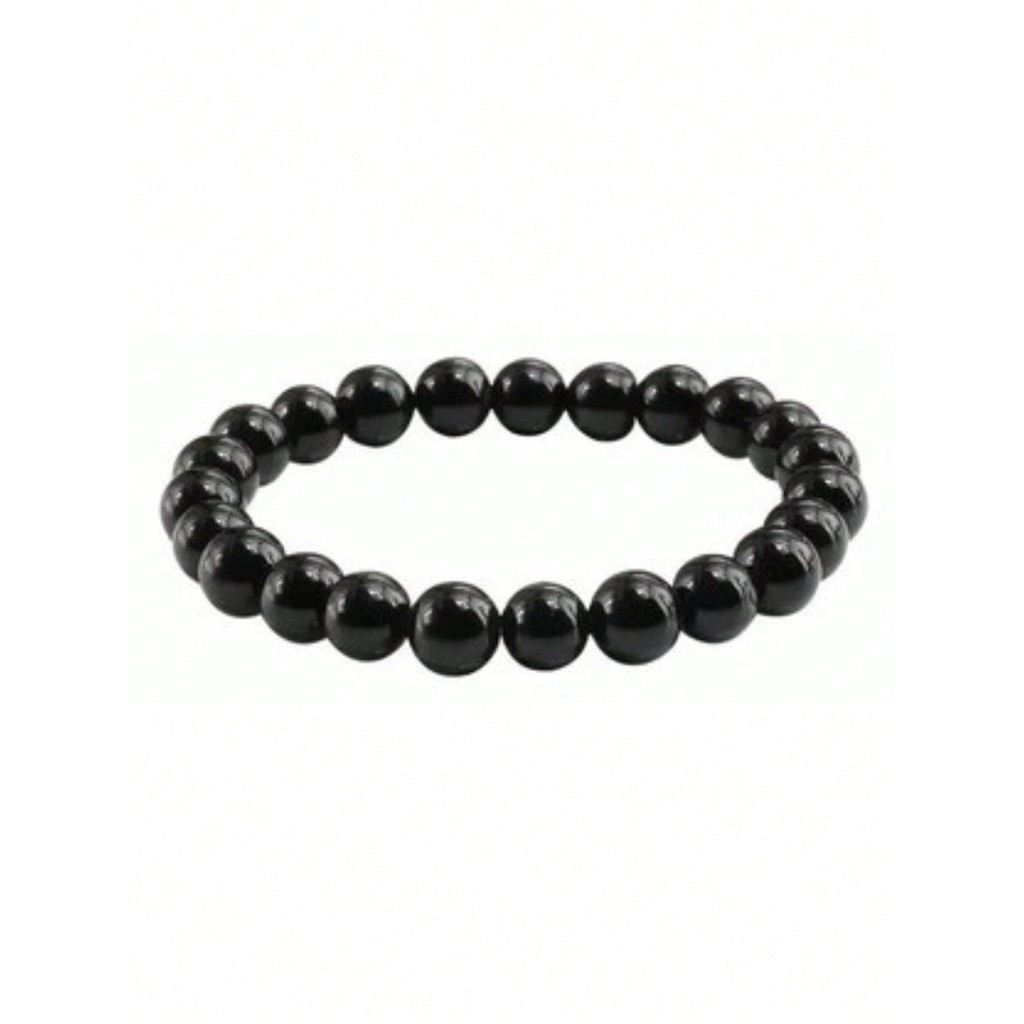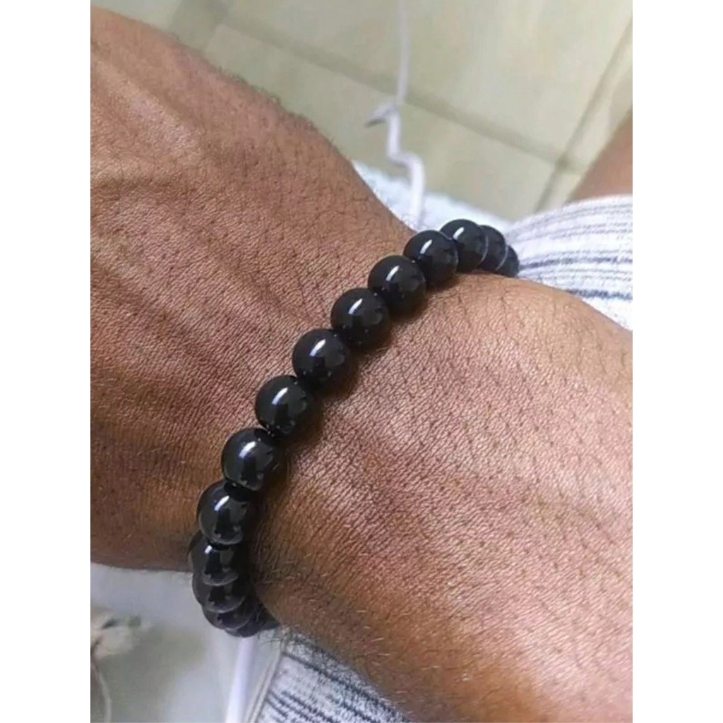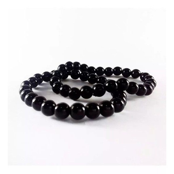 Kit com 6 Pulseiras de perola em ABS cor Onix Preta | pulseira fio silicone miçanga 0.8 MM