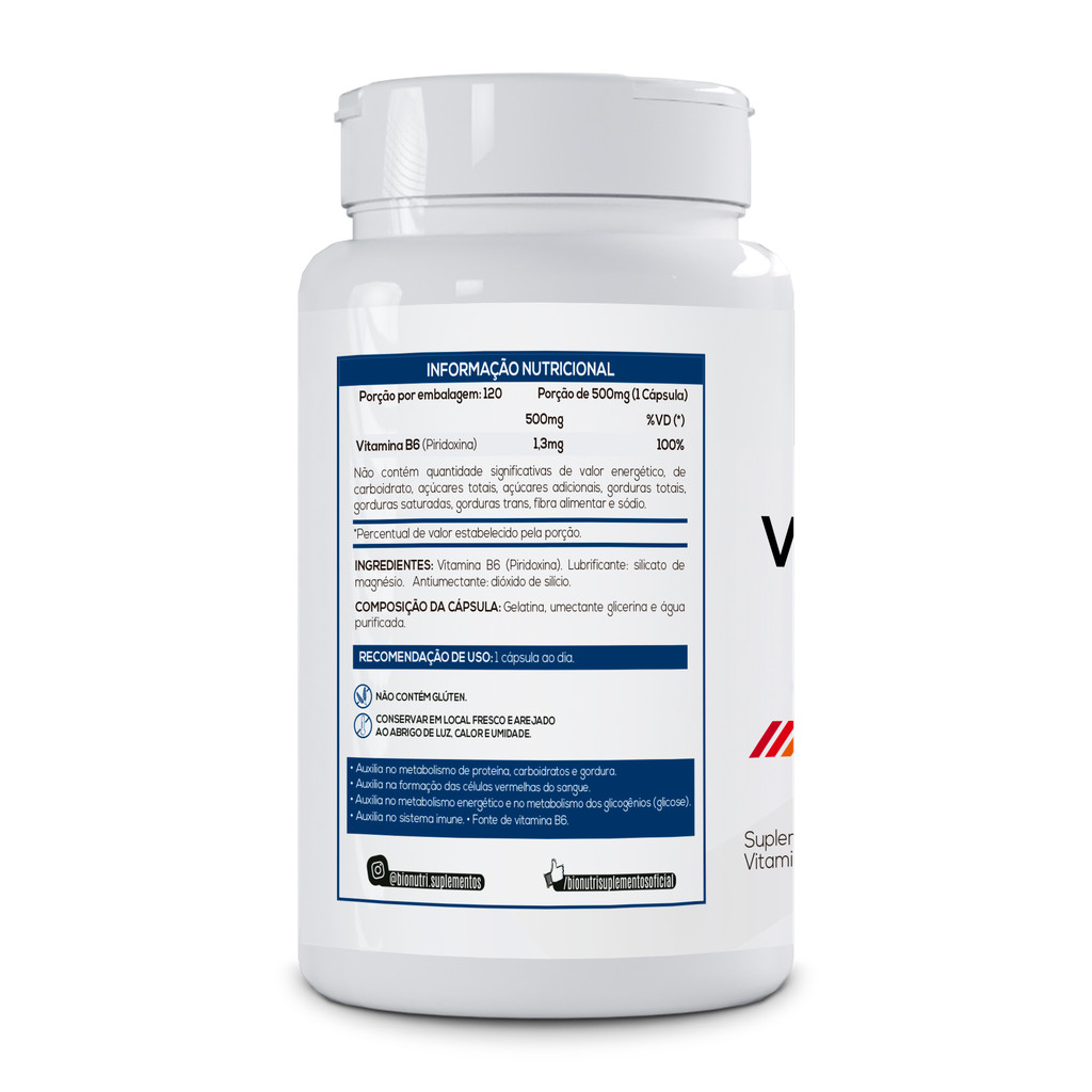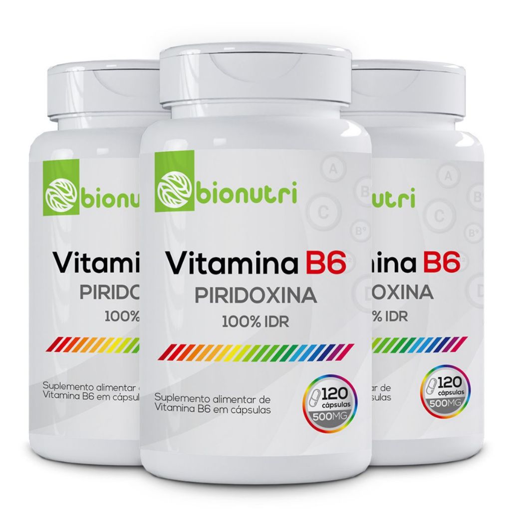 kit 1x3 Vitamina B6 (Piridoxina) 60 a 360 Cápsulas Bionutri Suplemento Alimentar