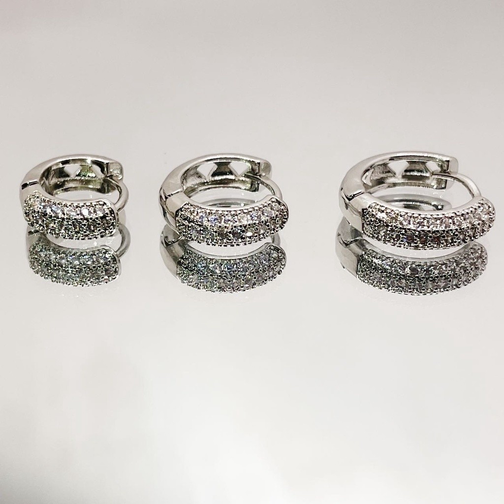 Brinco Argola Cravejada De Zircônias PEQUENA Bijuteria 1par prata