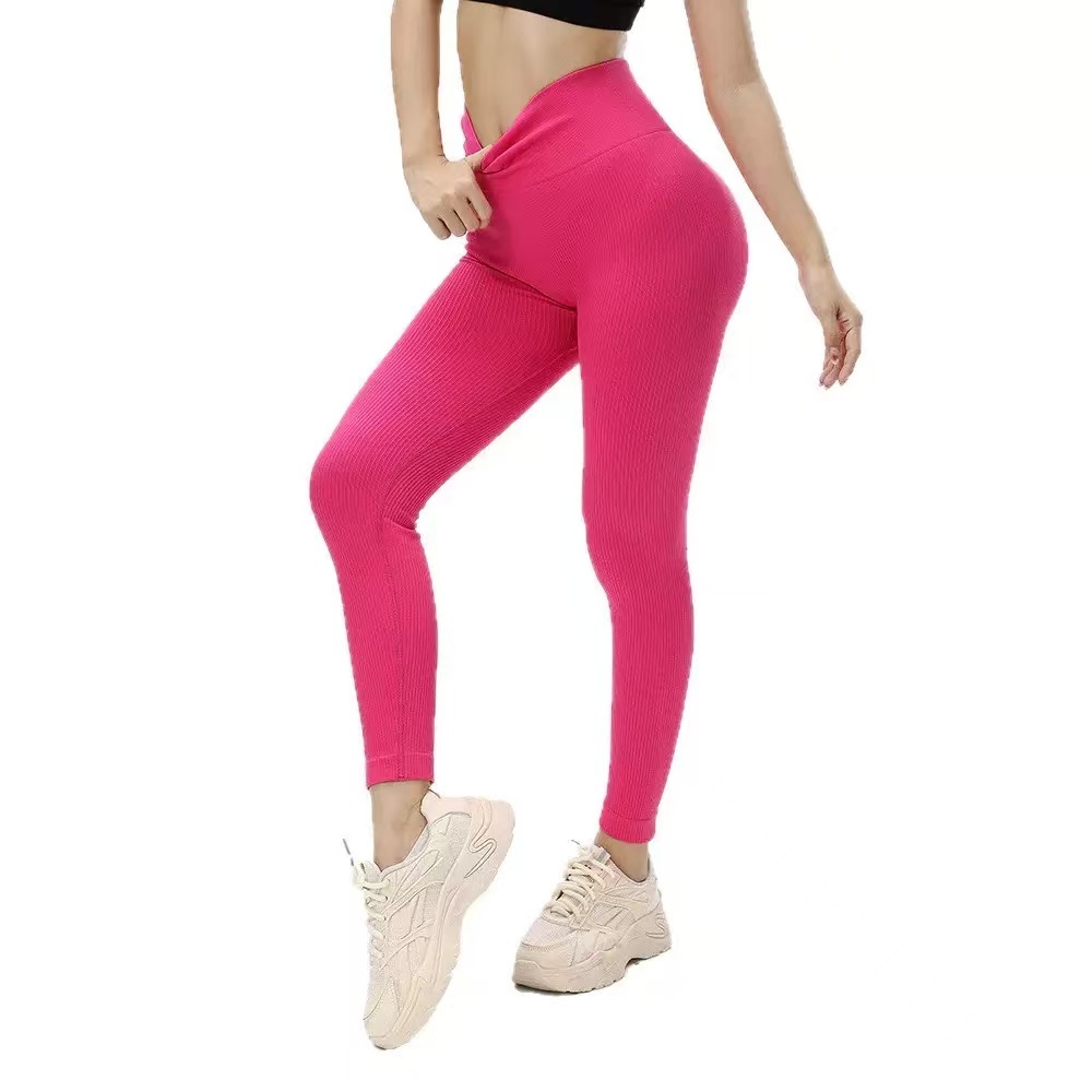 Academia Feminina Sem Costura Esportes Elástica Fitness Canelado Calça