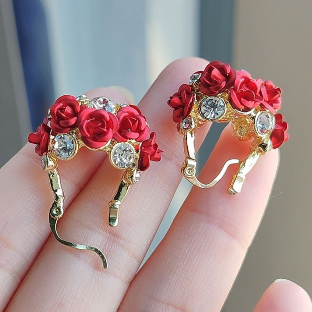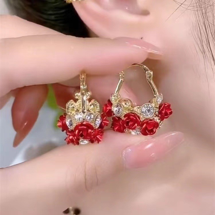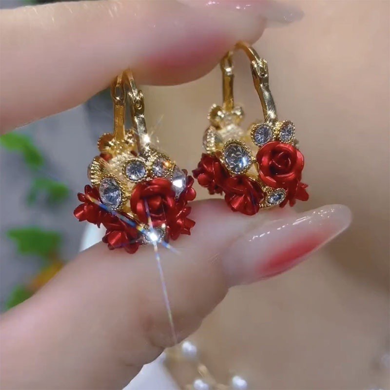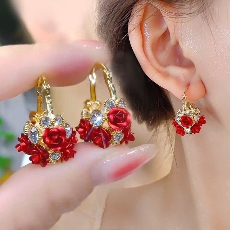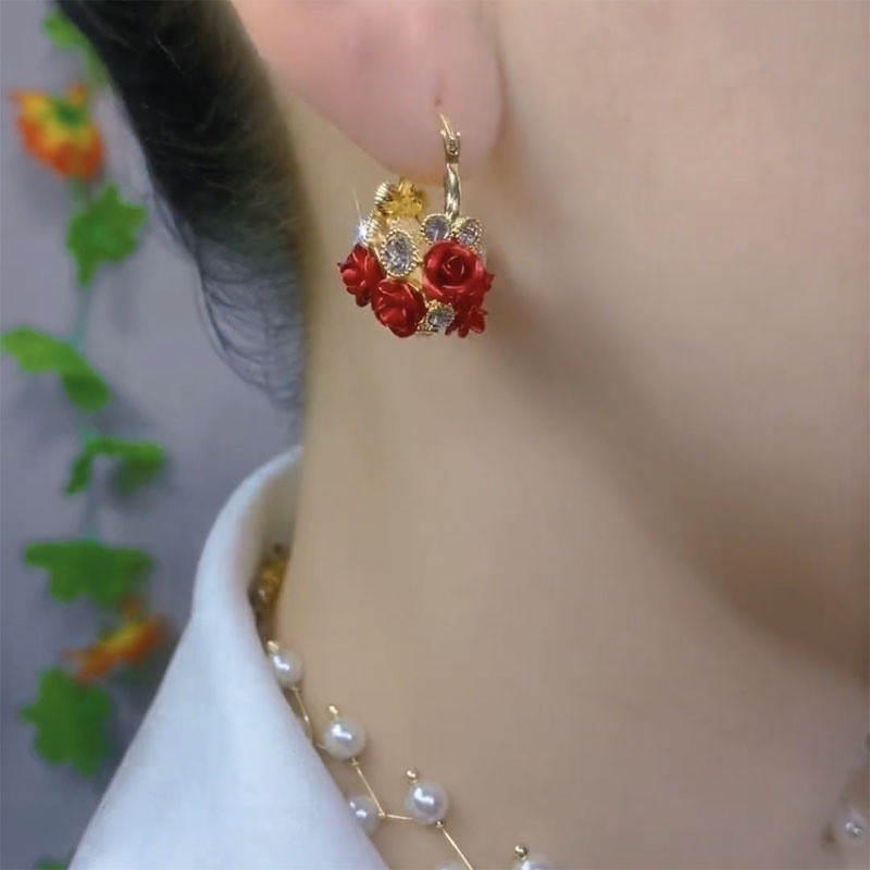 Cesta De Flores Rosa Orelha Fivela Moda Simples Brincos De Zircônio Requintados Para Mulheres