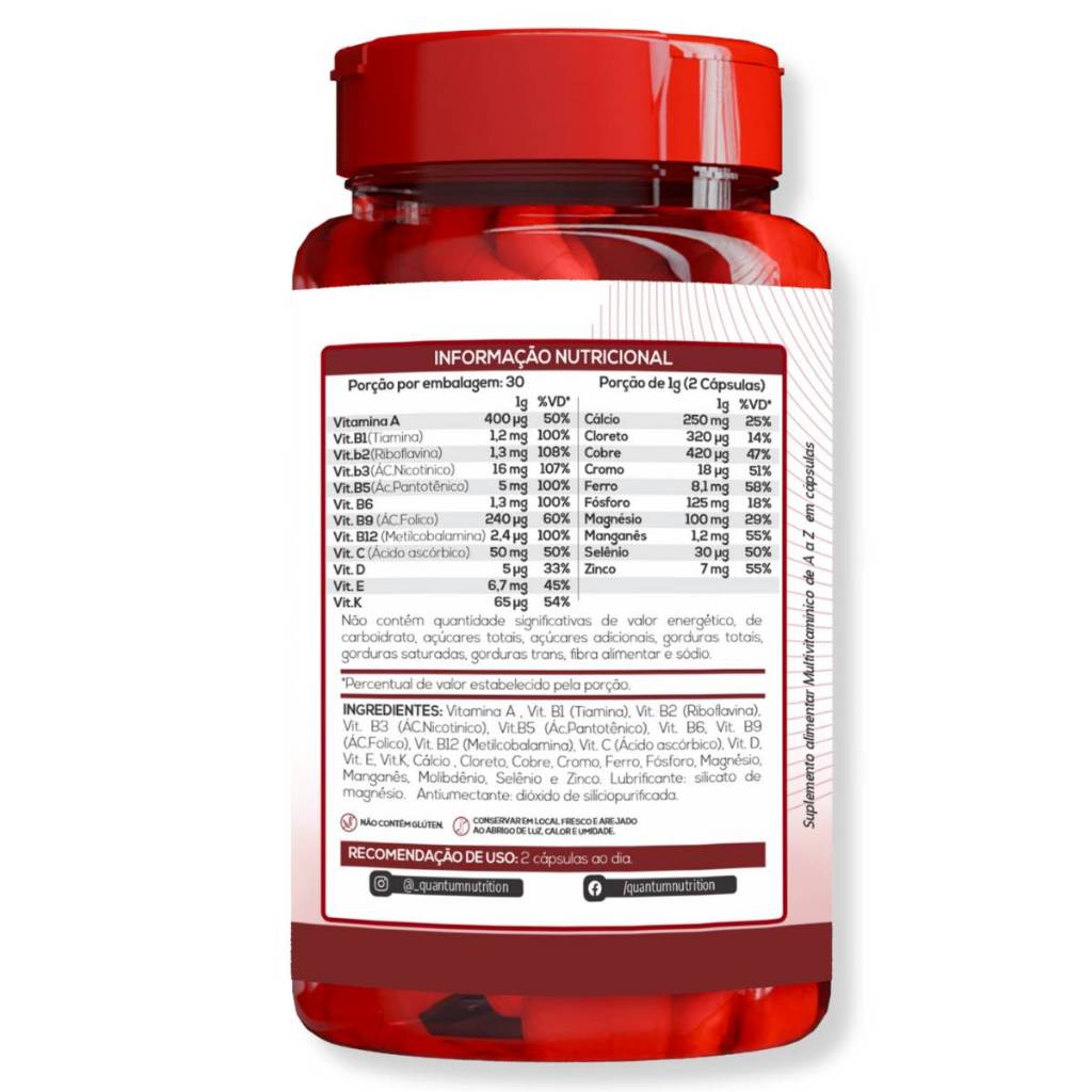 kit 1-3 Frascos Suplemento Multivitamínico AZ 60 cáps Fonte Vitaminas e Minerais Quantum