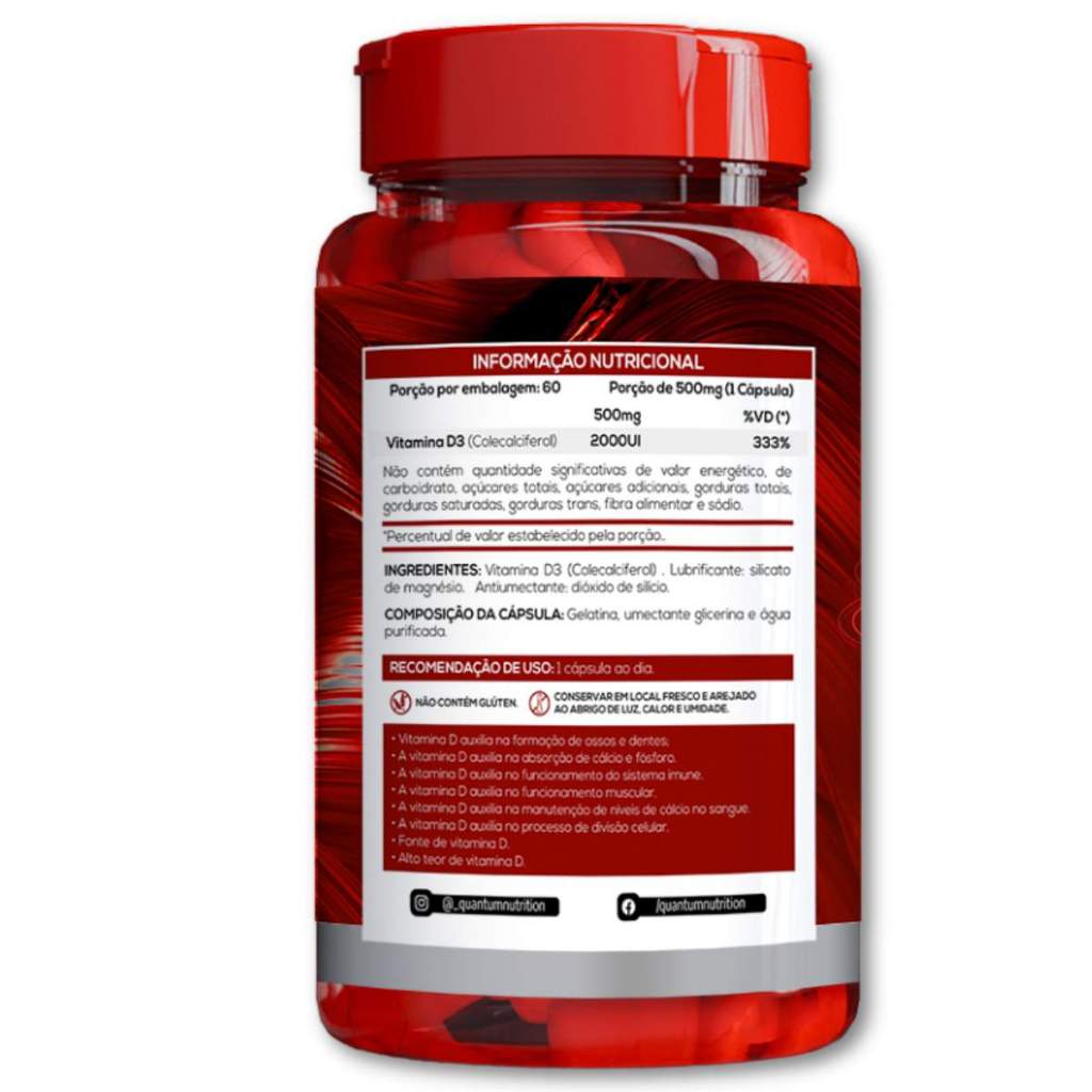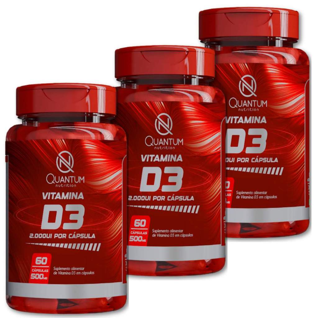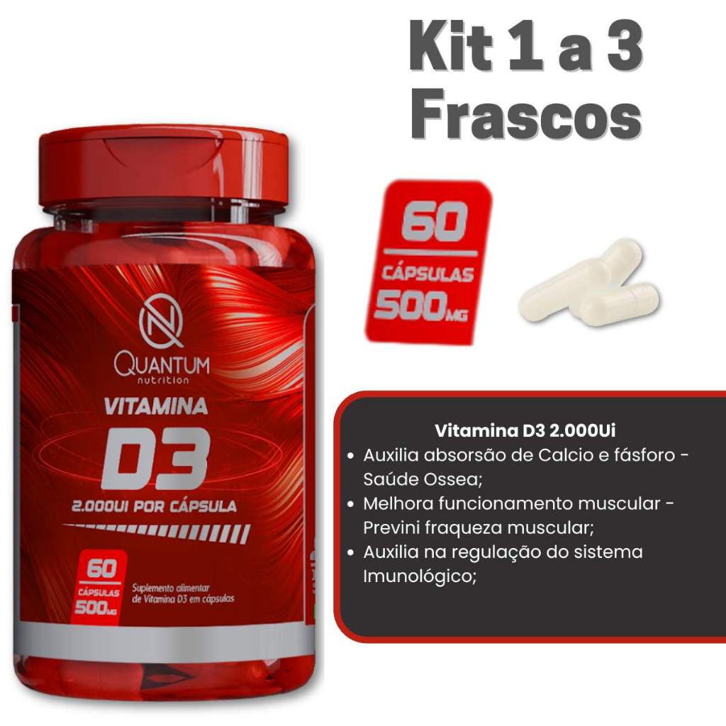 Kit 1 a 3 Vitamina D3 2000UI Original Suplemento alimentar Quantum Nutrition 60 Cáps