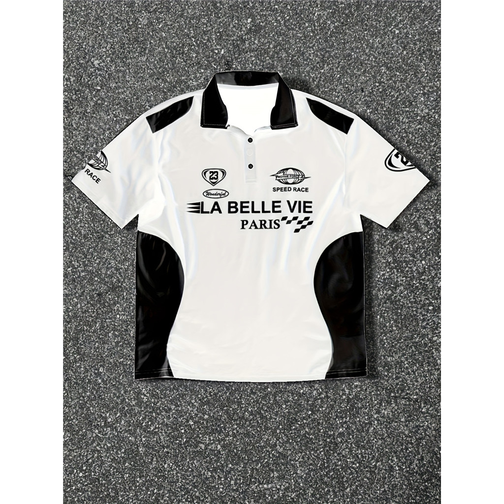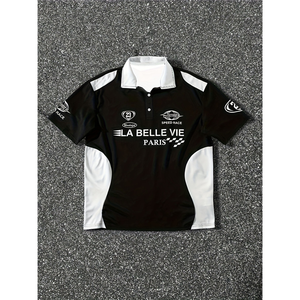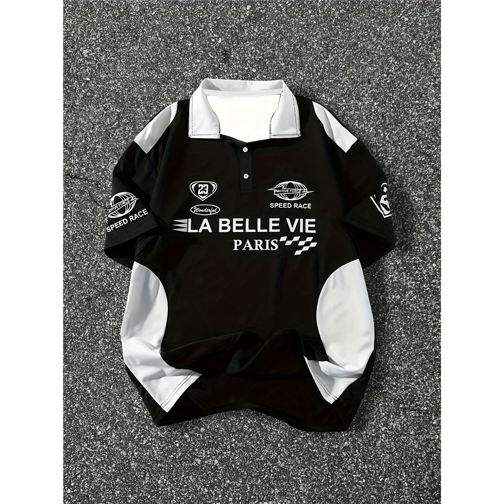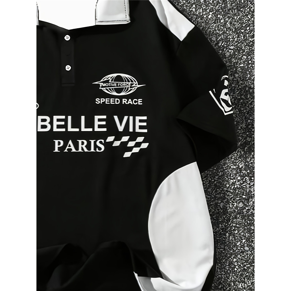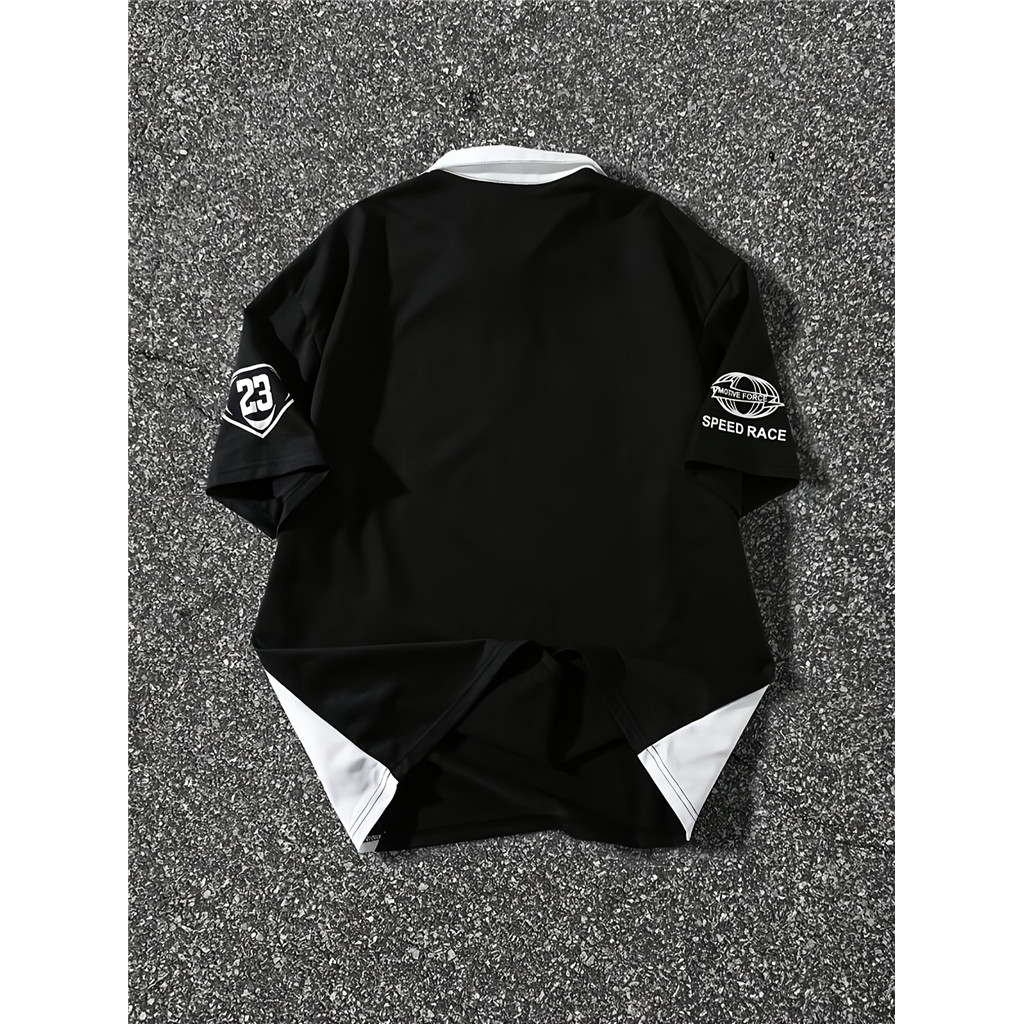 Camisa Masculina – Gola Contrastante Preta E Branca , Carcela Frontal Com Botões , Verão Respirável Para Roupas Formais