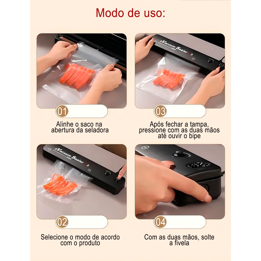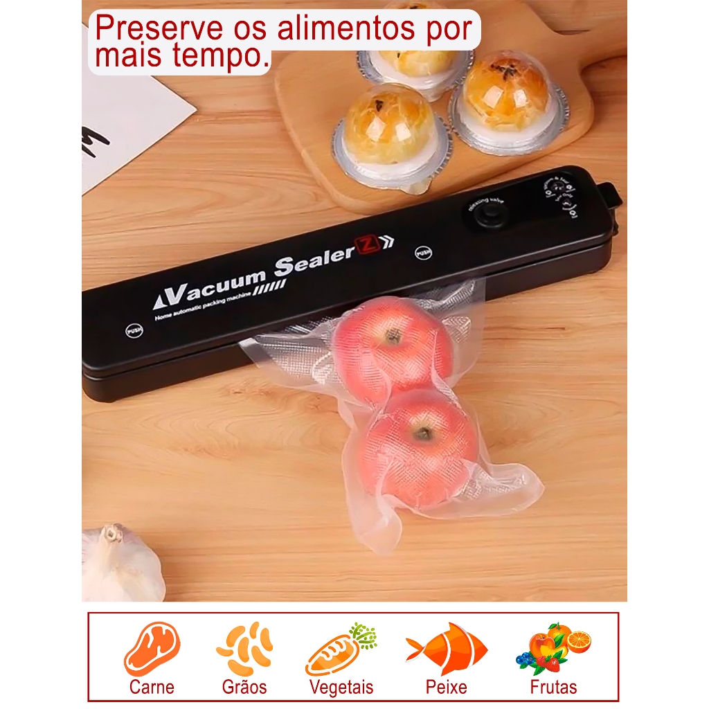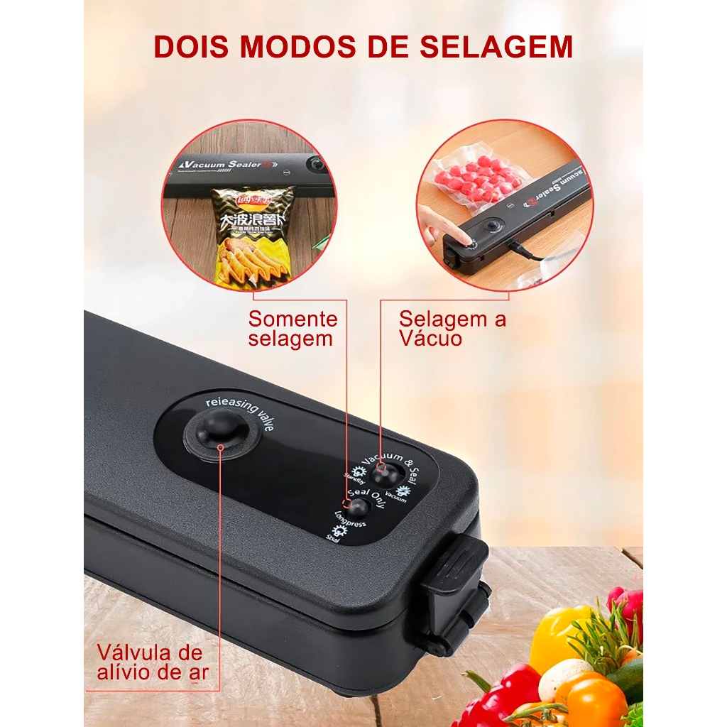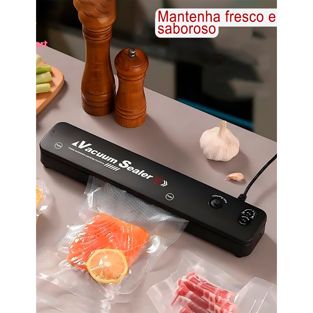 Seladora à Vácuo para Armazenar Alimentos Domésticos Embaladora Bivolt Portátil