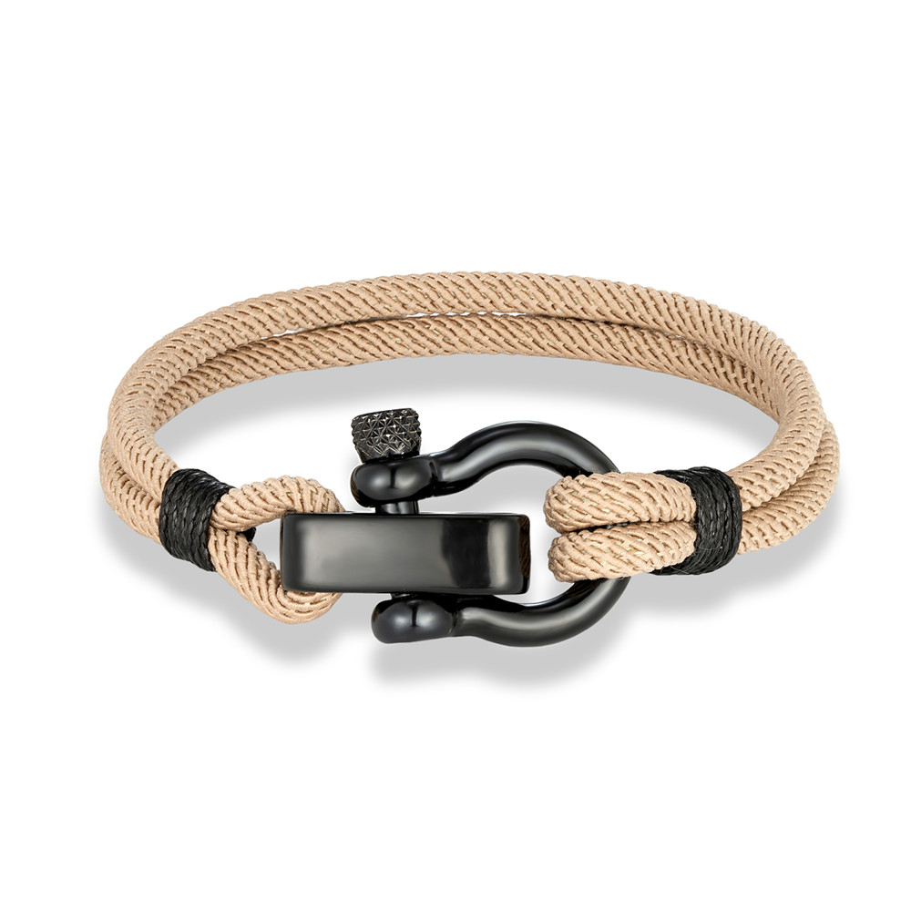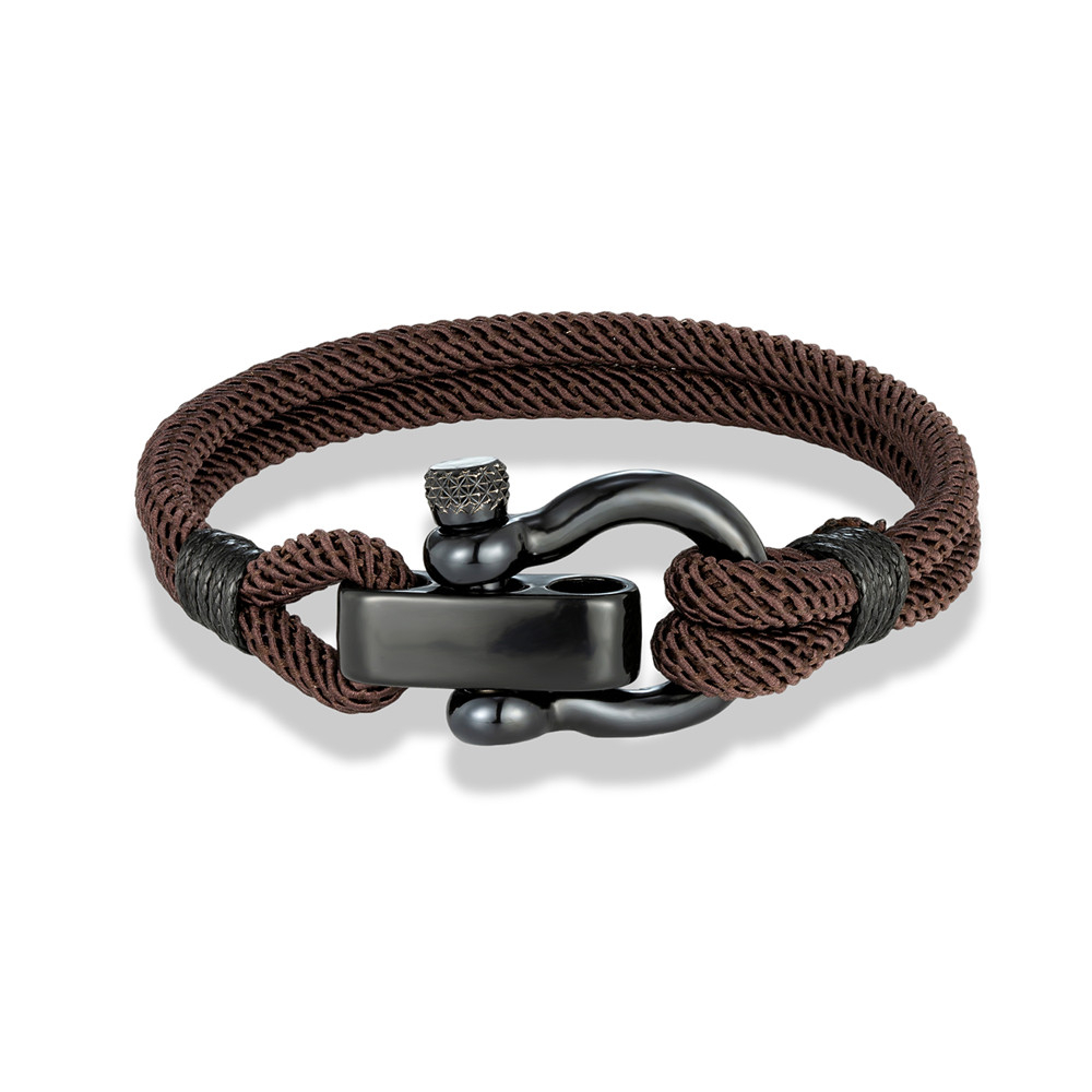 MKENDN Black Bracelete Ajustável Em Ferradura De Aço Inoxidável Cavalo Moda Milão Corda Camadas Duplas Homem