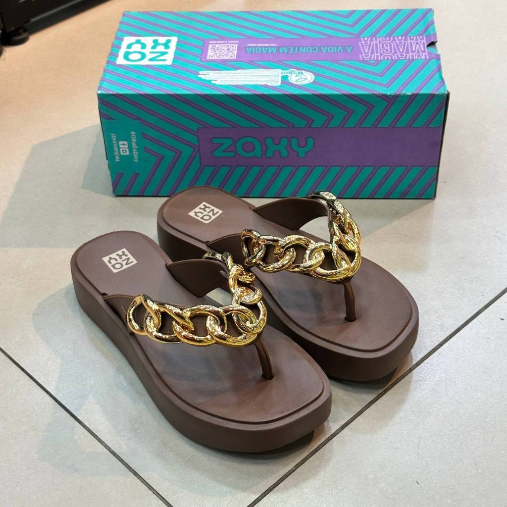 Tamanco Chinelo de Dedo Zaxy Plataforma Feminino com Corrente Dourada - Conforto e Estilo 19726
