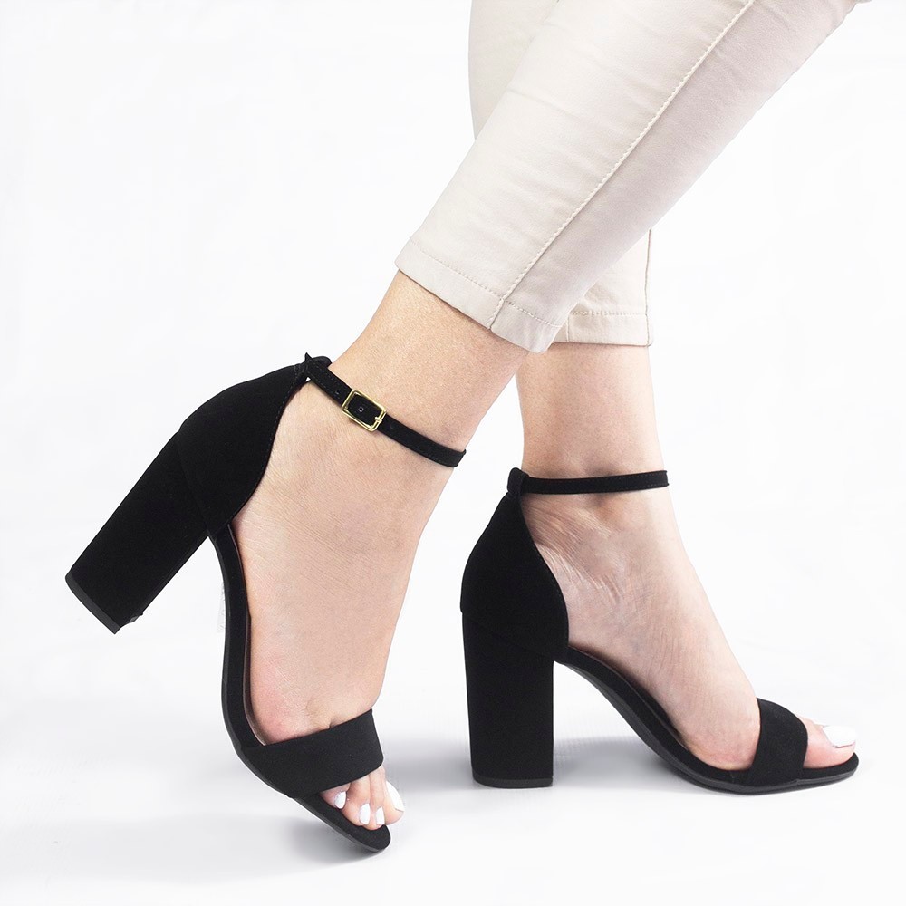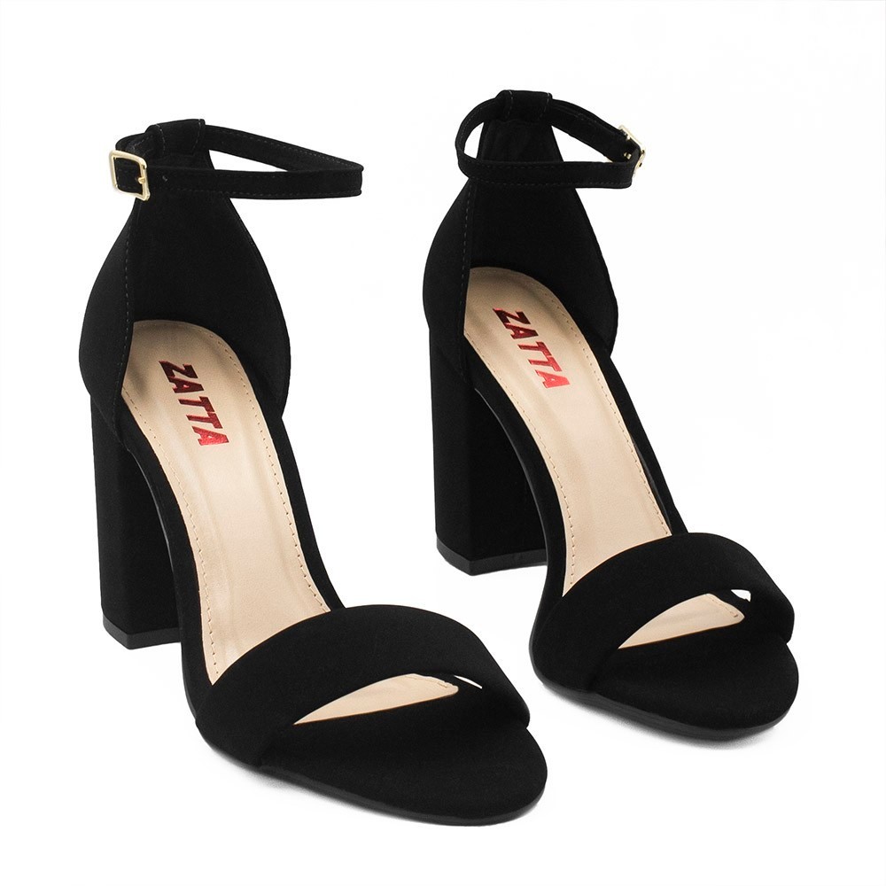 Sandália Salto Bloco Alto Pilar Preto Nobuck