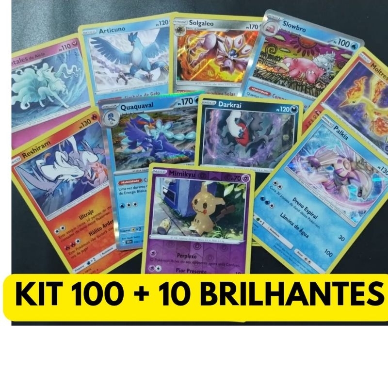 Lote Cartas pokemon até 110 cartas COM CARTAS BRILHANTES SEM REPETIDAS TODAS ORIGINAIS EM PORTUGUES