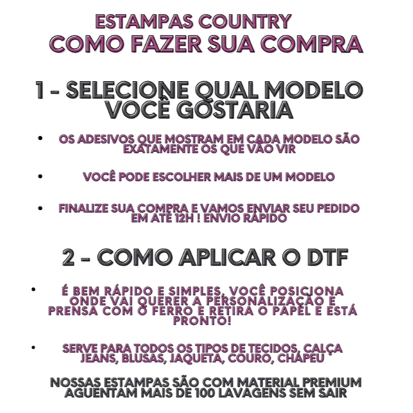 Adesivo DTF Country Adesivo Termocolante Para Personalizar Calça Jaqueta Camisas Pronto para Estampar