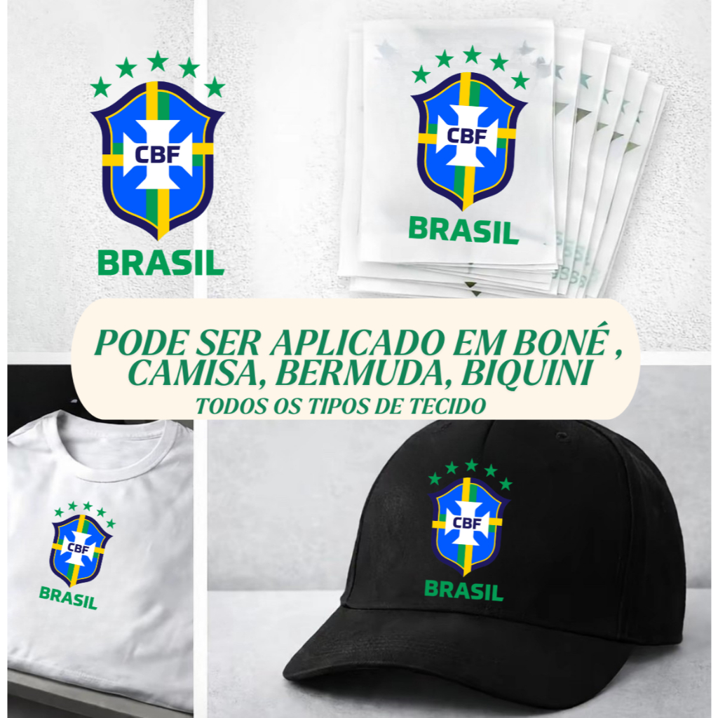 TERMOCOLANTE DTF TÊXTIL ESTAMPA Brasil Seleção Copa Do Mundo 8cm