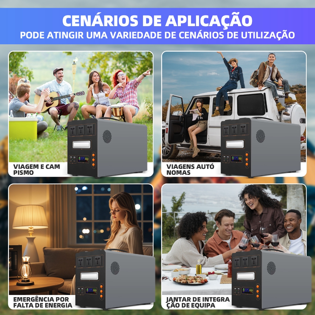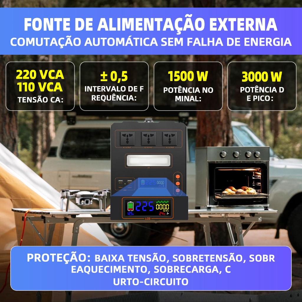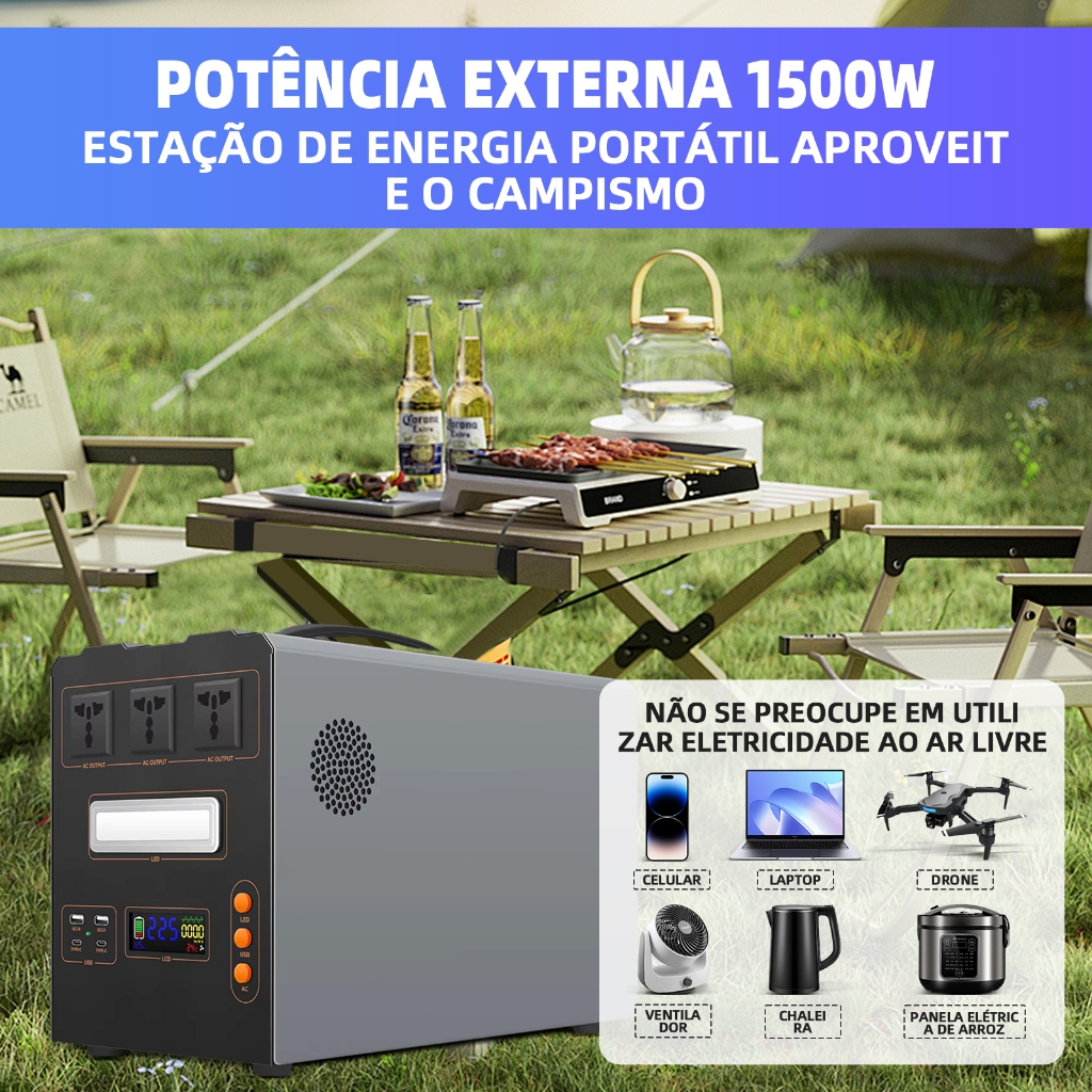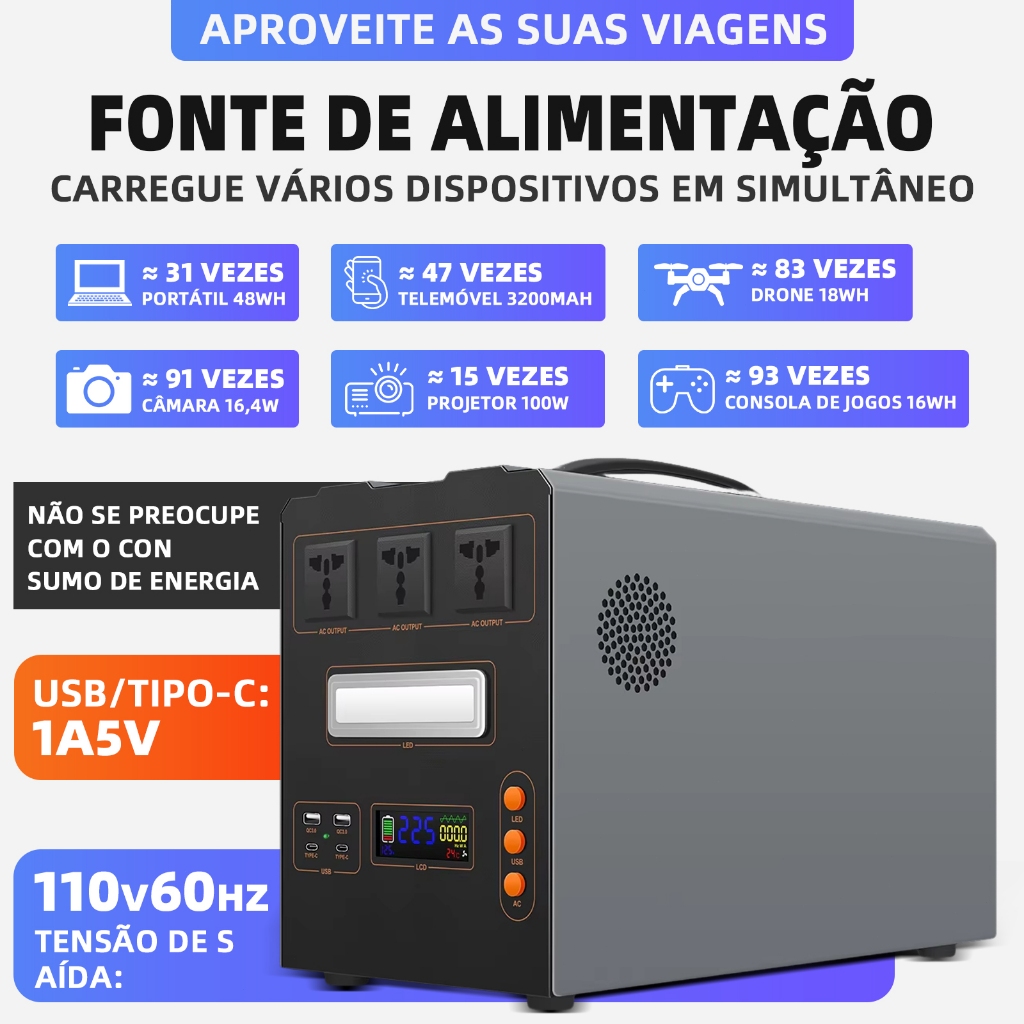 Estação de Energia Portátil 1500W - Saída Dual 110V USB-C Rápido e LED, 600W-1500W
