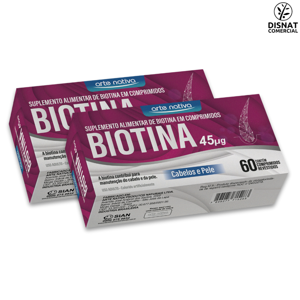 Kit 2x Vitamina Biotina 45µg Cabelos e Unhas 60 Comprimidos - Arte Nativa