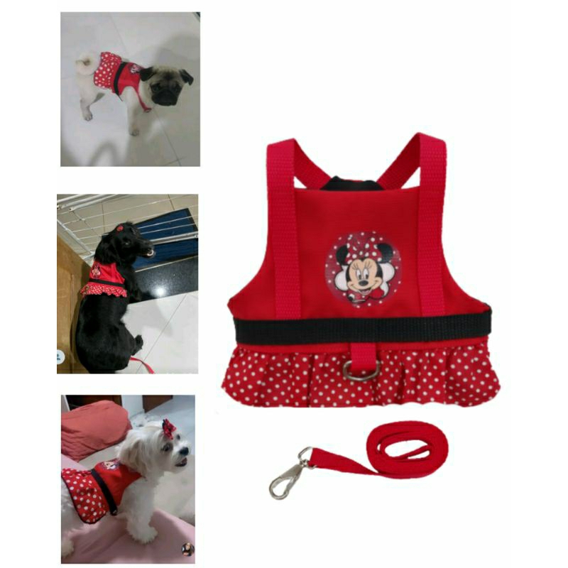 Coleira Peitoral com Guia ajustável para Cachorro cor Rosa