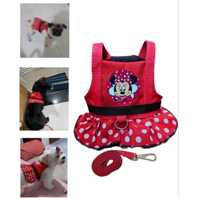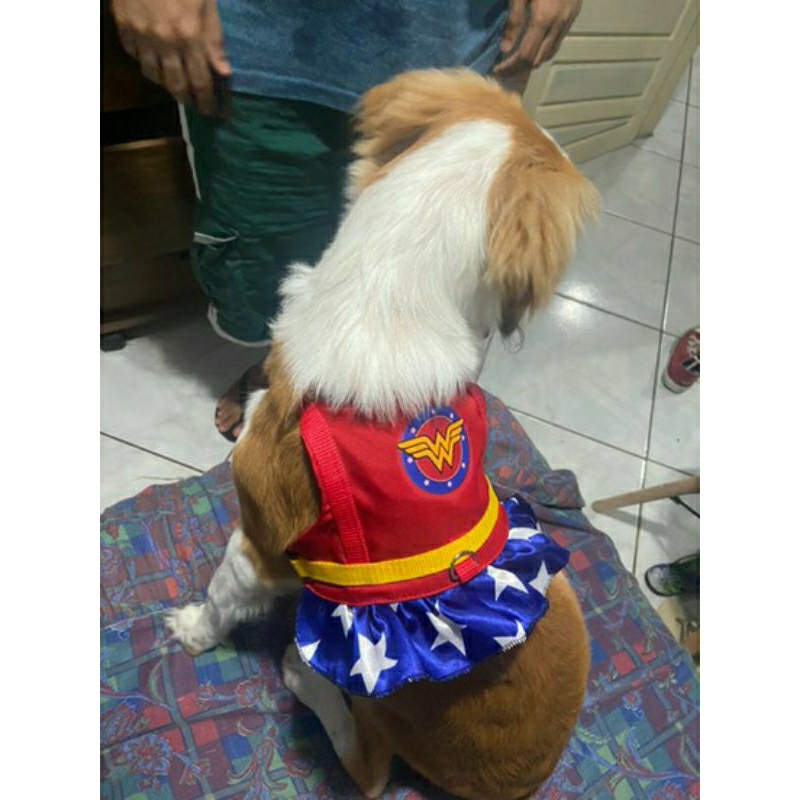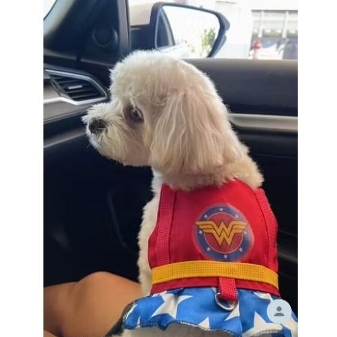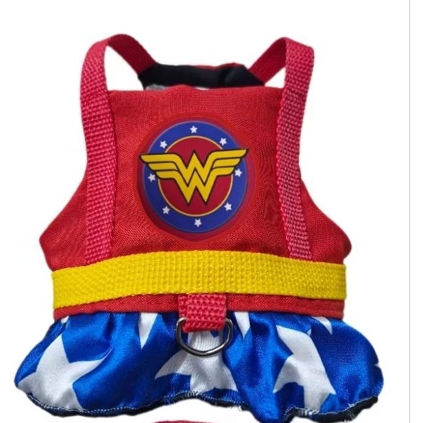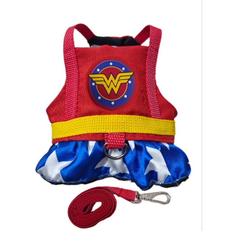 Coleira Peitoral para Cachorro com Guia Vermelha Mulher Maravilha