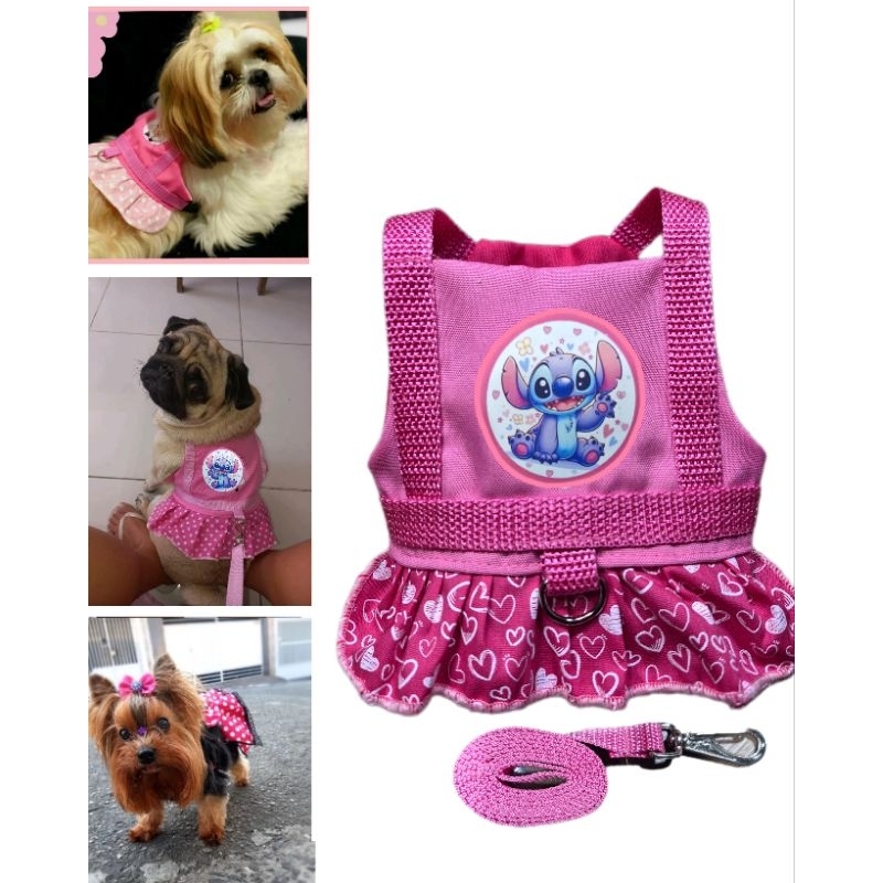 Coleira Peitoral com Guia para Dog e Gato fêmea Stitch