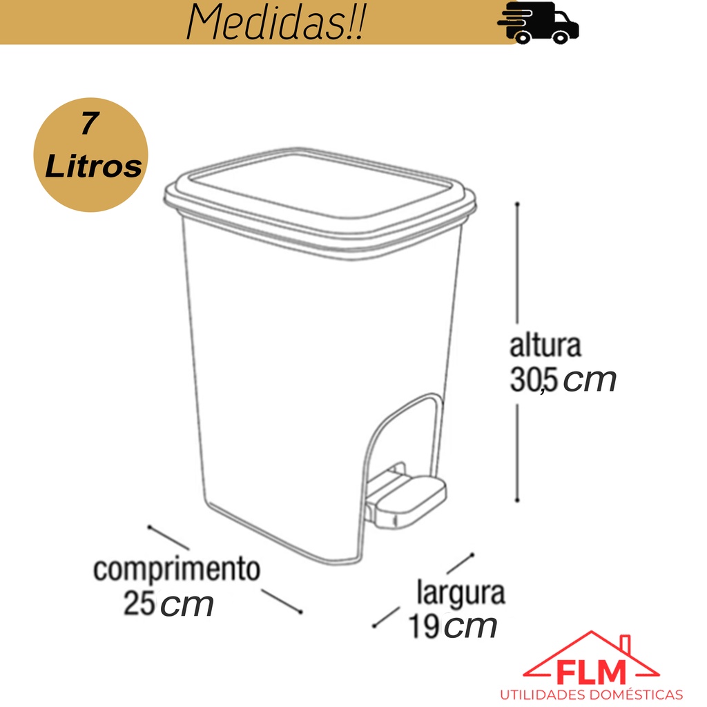 Kit Lixeira Pia 5 Litros + Lixeira 7 Litros com Pedal + Porta Detergente + Rodo de Pia Kit Cozinha 4 Peças