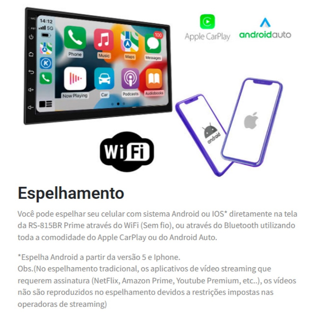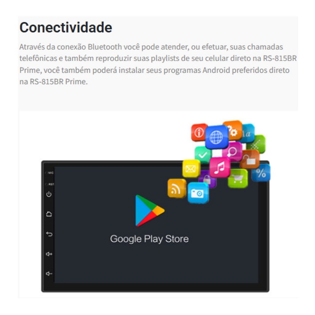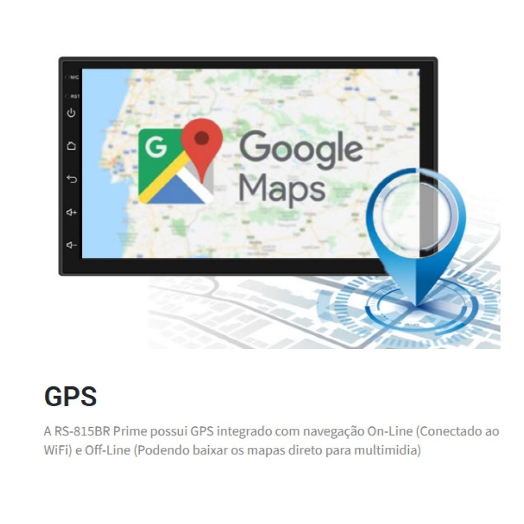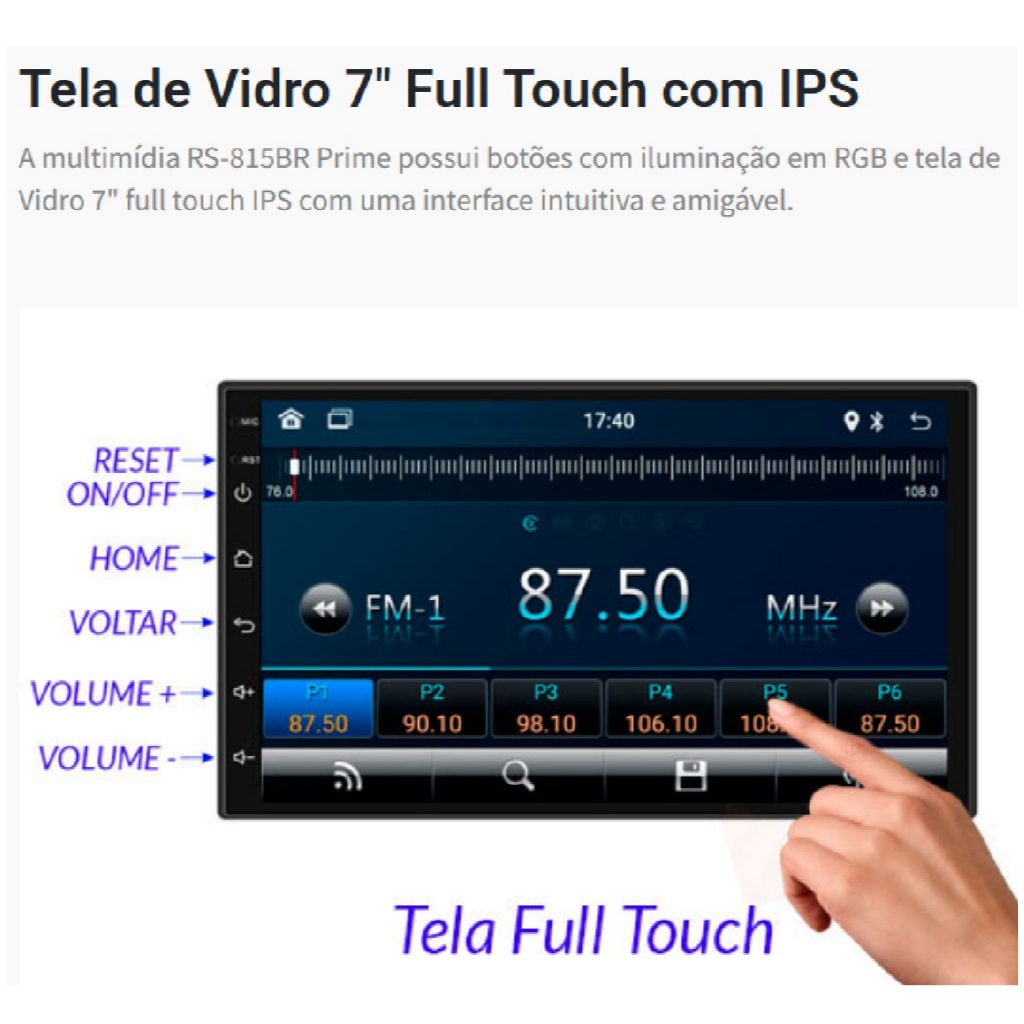 Central Multimídia Automotiva Roadstar RS815BR Prime 7'" Android Full Touch Bluetooth GPS Rádio FM