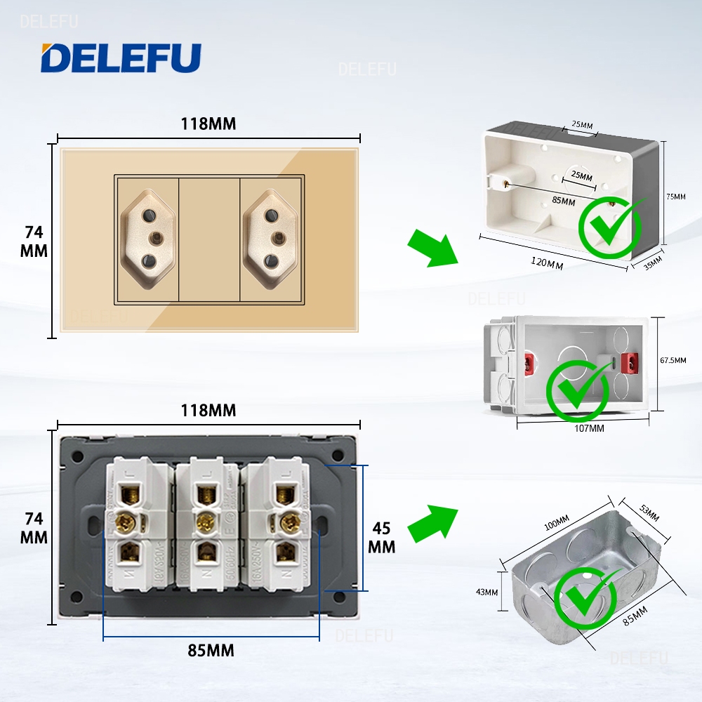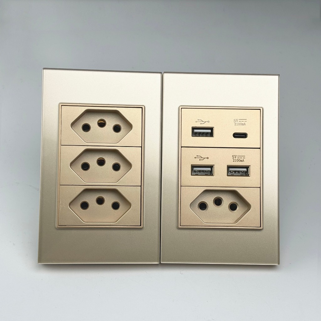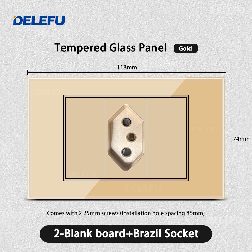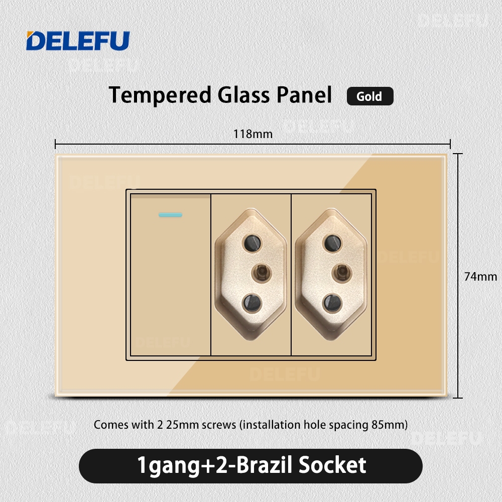 DELEFU 4 * 2 Vidro Dourado Temperado Tomada Padrão Dupla USB Tipo C Interruptor De Parede 10A 20A