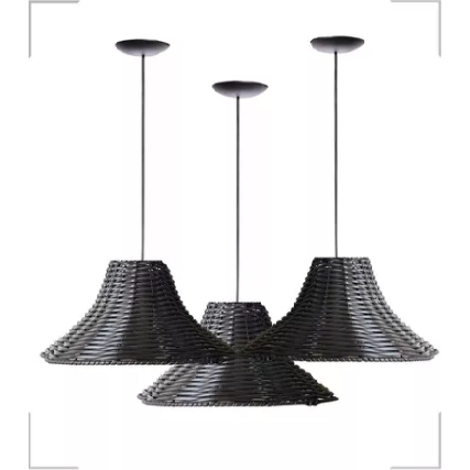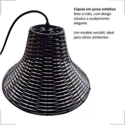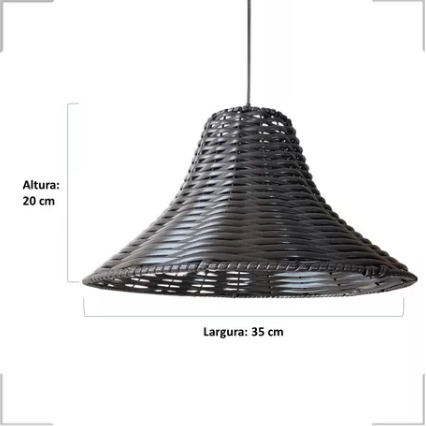 Lustre Pendente Luminária Chapéu Chinês Junco Fibra Sintética Artesanato Rústico