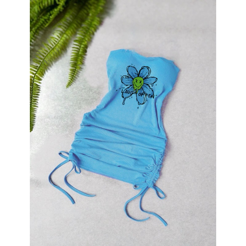 Vestido canelado fenda lateral drapeado regulagem