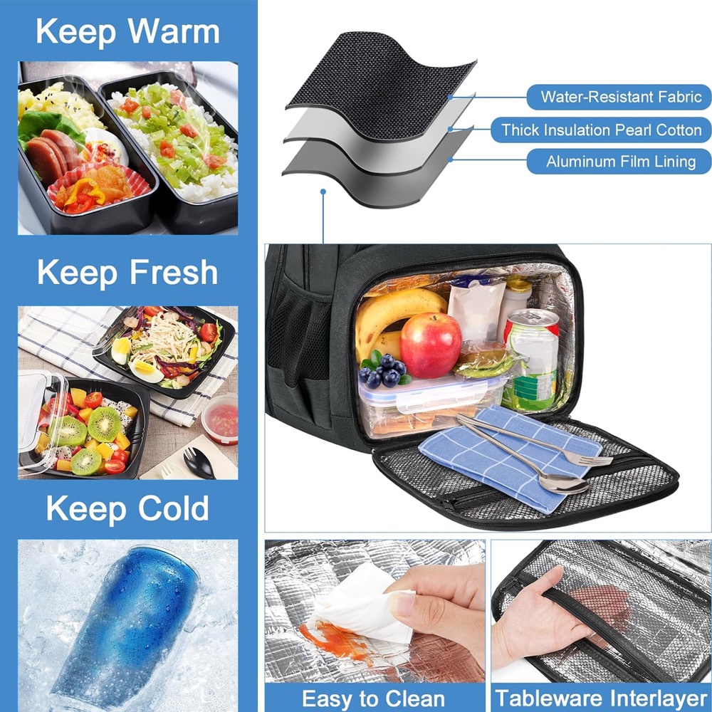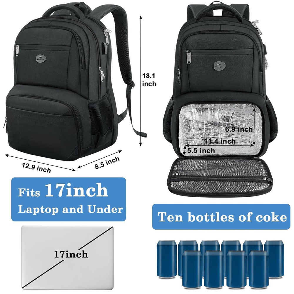 Mochila de Almoço Viagem Matein Bolso para Laptop Preta
