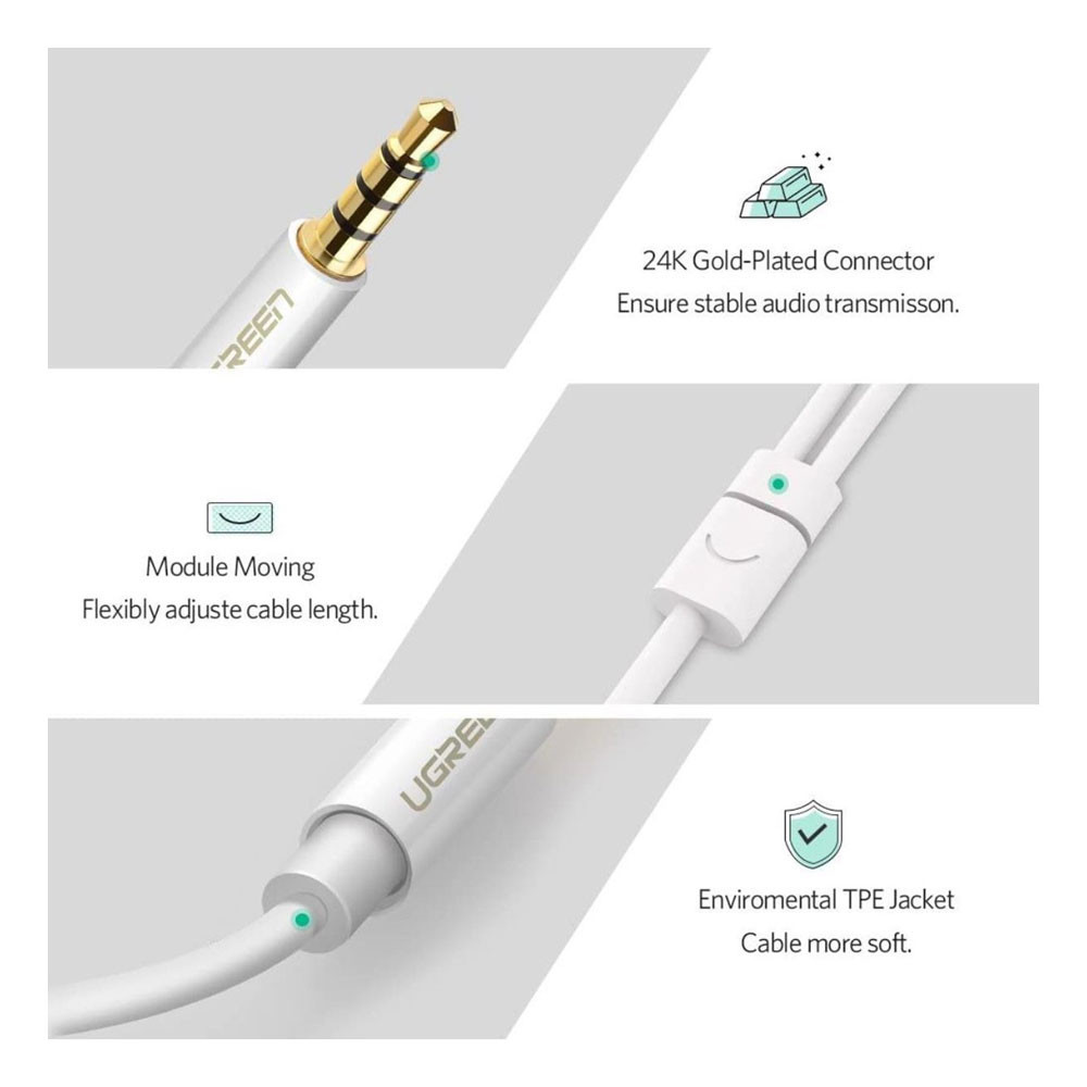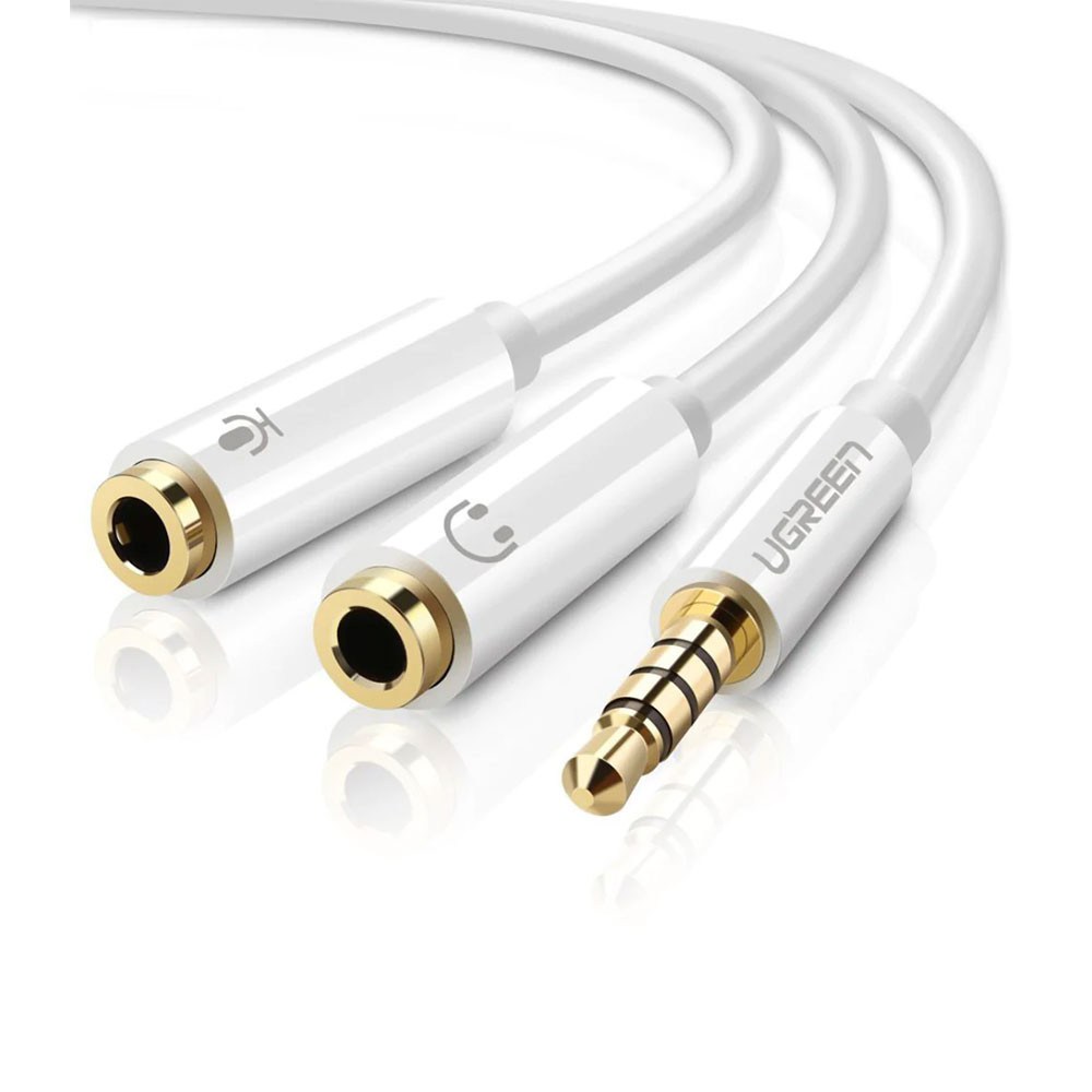 Cabo Divisor Áudio Ugreen 3.5mm Macho p/ 2 Fêmea Branco